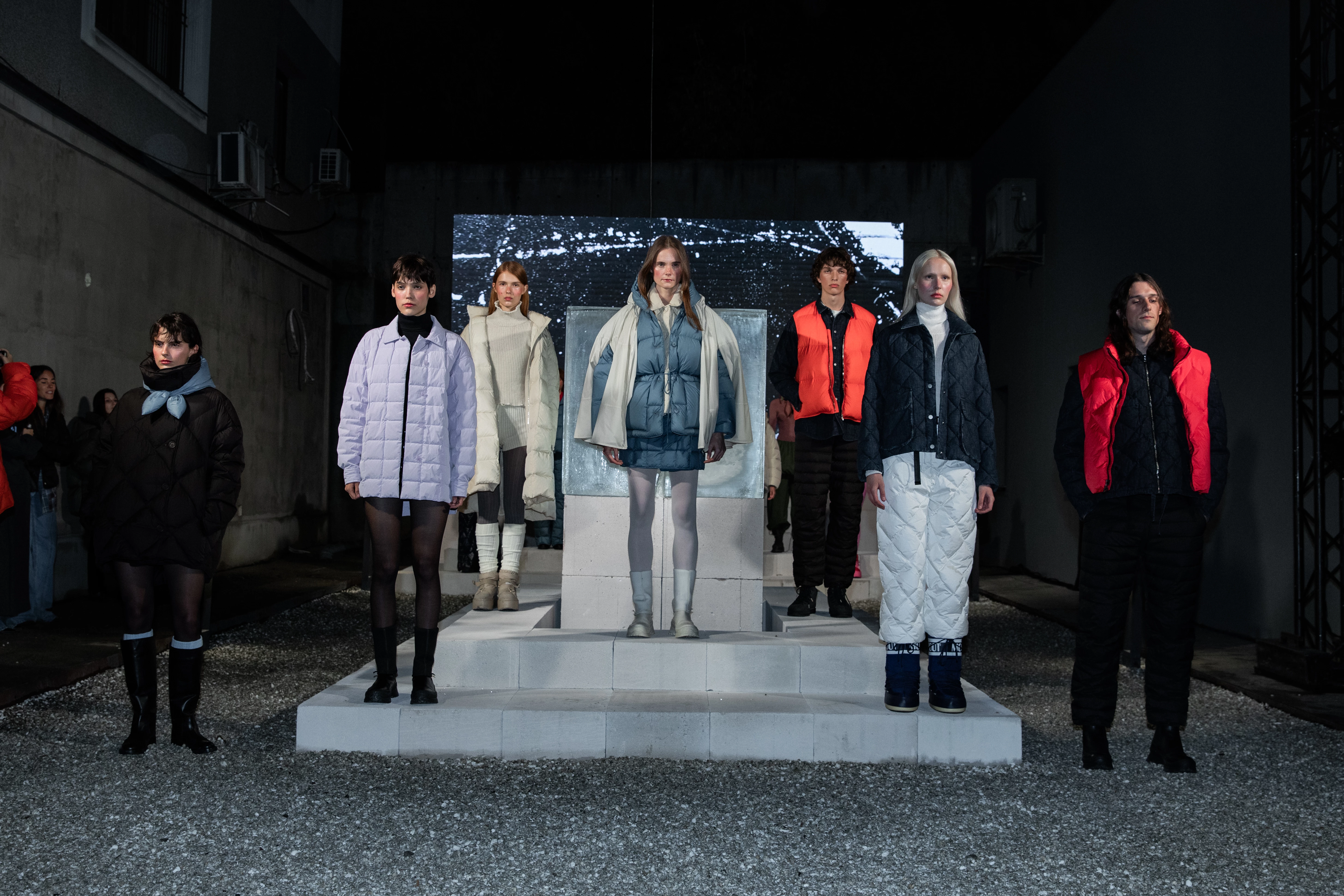 Кульмінацією вечора стала презентація нової колекції IENKI IENKI у дворику шоуруму. Під проєкції кадрів танення льодовиків, моделі представили образи у стилізації Надії Шаповал. Спеціально для показу музикант Гоша Бабанський написав електронну двоактову композицію, які органічно підкреслили атмосферу навколо льодового монументу та нової колекції. Так бренд створив художній простір, де мода вступила в діалог із кліматичними процесами та відчуттям глобальних змін.