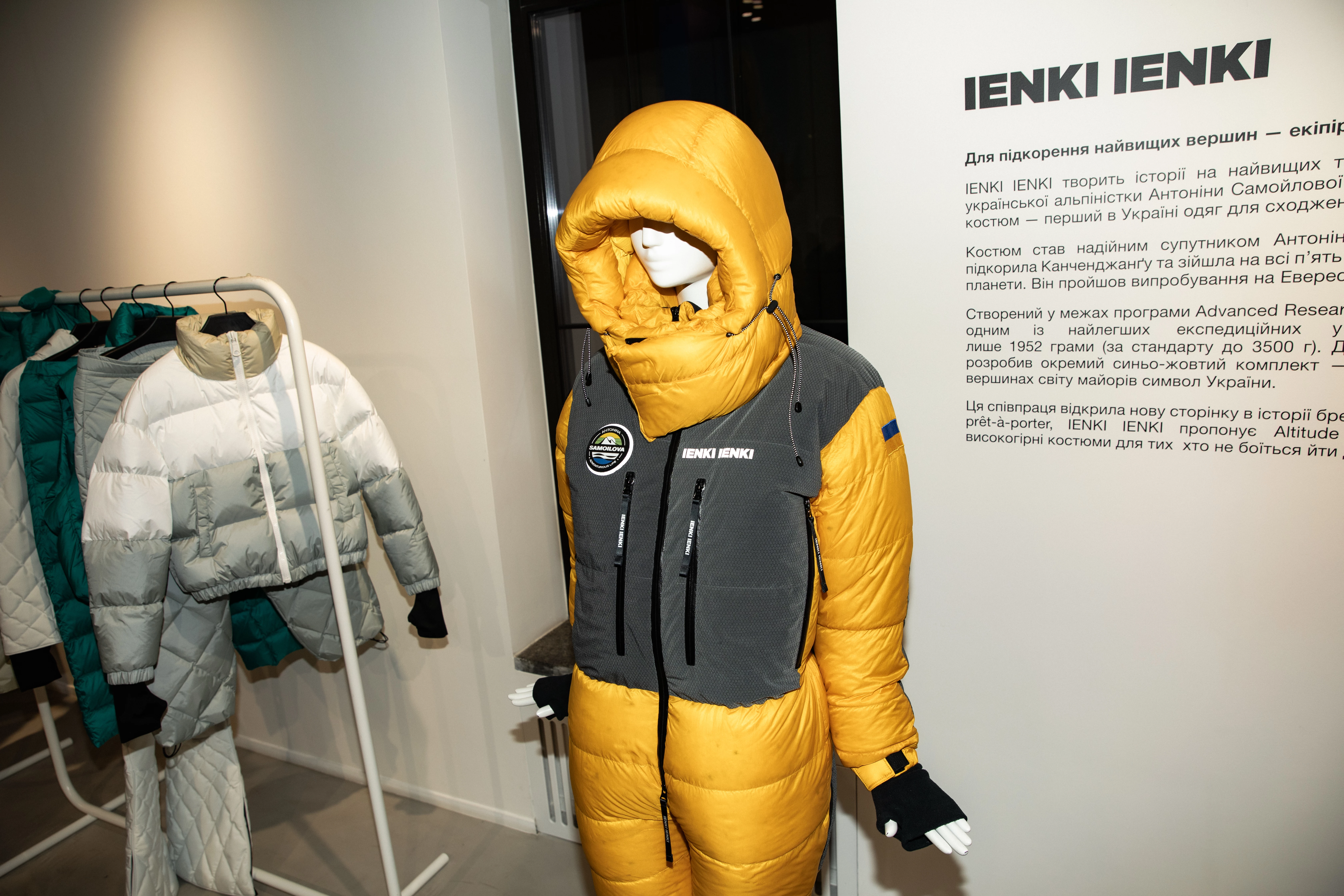 Спеціальною гостею вечора стала альпіністка Антоніна Самойлова, для якої IENKI IENKI розробили високогірний костюм для сходжень на найвищі вершини світу. У шоурумі було представлено його окрему експозицію — так бренд підкреслив свій унікальний made-to-measure напрям Altitude Atelier, який бренд розвиває для тих, хто підкорює вершини.
