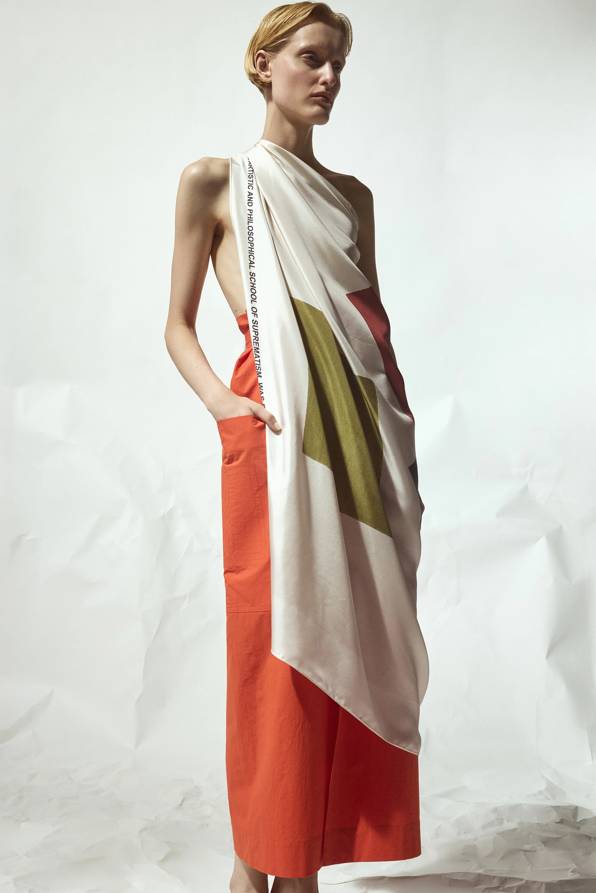 Серед ключових виробів колекції – штани "Малевич", які частково пошиті з вінтажних тканин, що підтримує курс BEVZA на сталість і відповідальність, сумки з фірмовим плетінням, а також сукні, що скроєні з одного квадрата, з акцентом на чисті лінії та геометрію.