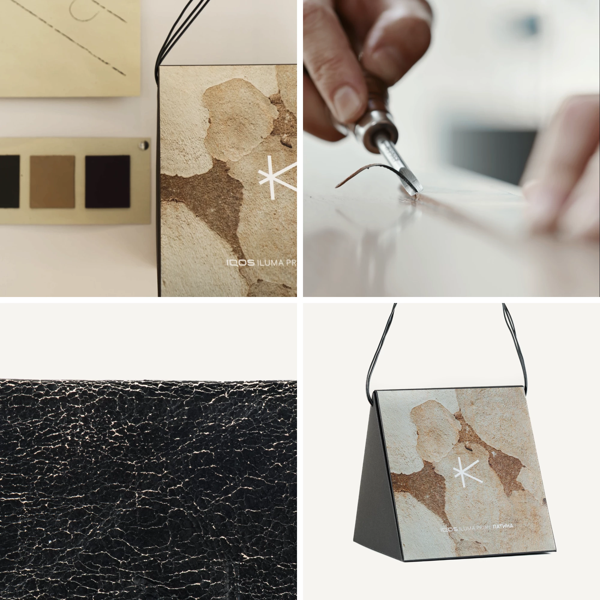 У межах колаборації з IQOS бренд представив накладку, виготовлену з високоякісної шкіри без додаткового покриття. Такий матеріал не маскує природну текстуру, не вкривається лаком або фарбою, а з часом набуває благородної патини — унікального візерунка з легких подряпин і потемнінь, що зʼявляються у процесі використання. Саме це надає виробу характеру й індивідуальності.