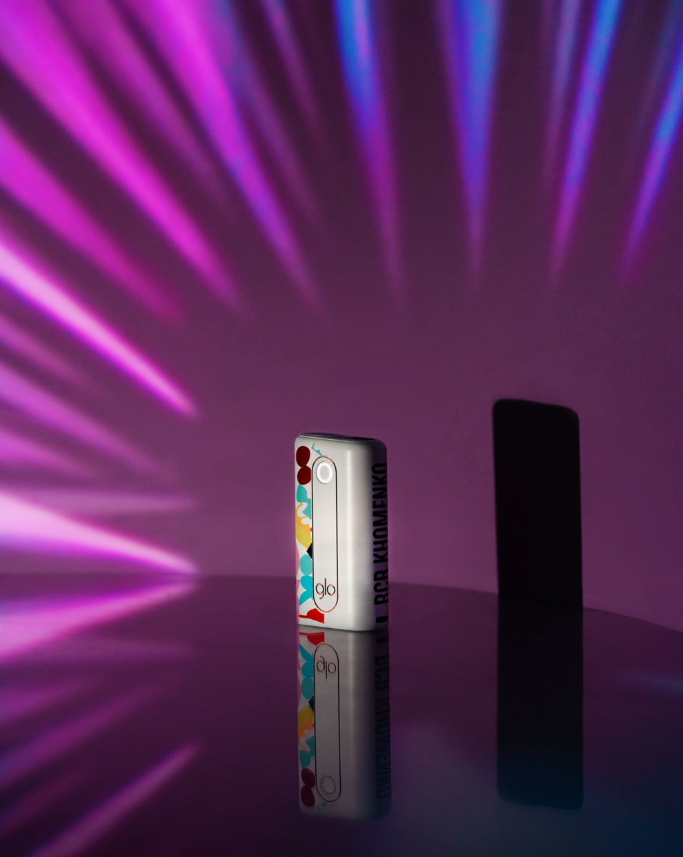 Результат цієї співпраці — нова серія пристроїв glo hyper, що поєднують інноваційну технологію індукційного нагрівання і новий формат стиків*, яку команда glo™ представила цього року. Тепер новинку вирізняє яскравий дизайн і робота з графікою, що асоціюються з творчістю RCR KHOMENKO. Головним став принт — різнокольорові спалахи кольору на білому тлі, який шанувальники бренду впізнають з першого погляду.
