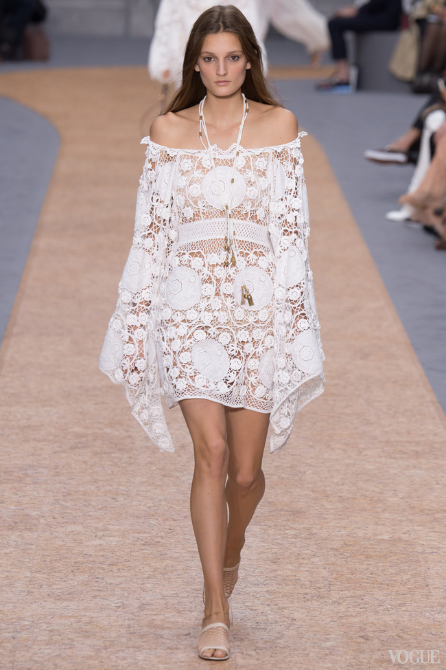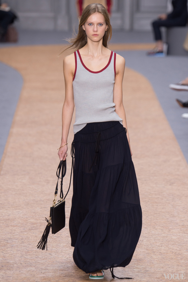 Ближе к финалу шоу дизайнер все-таки вернулась к узнаваемым силуэтам – как и прежде развевающимся при ходьбе и иногда деликатно просвечивающимся. В таких хочется бегать по полям с цветочным венком в волосах и радоваться малейшему дуновению ветра, но в таких не всегда удобно существовать в большом городе. "Именно поэтому я соединила городскую удобную одежду, тяготеющую к спорту, с классикой бренда. Эта коллекция о свободе, а девушка Chloe должна чувствовать себя комфортно в любой среде", – резюмировала Келлер.