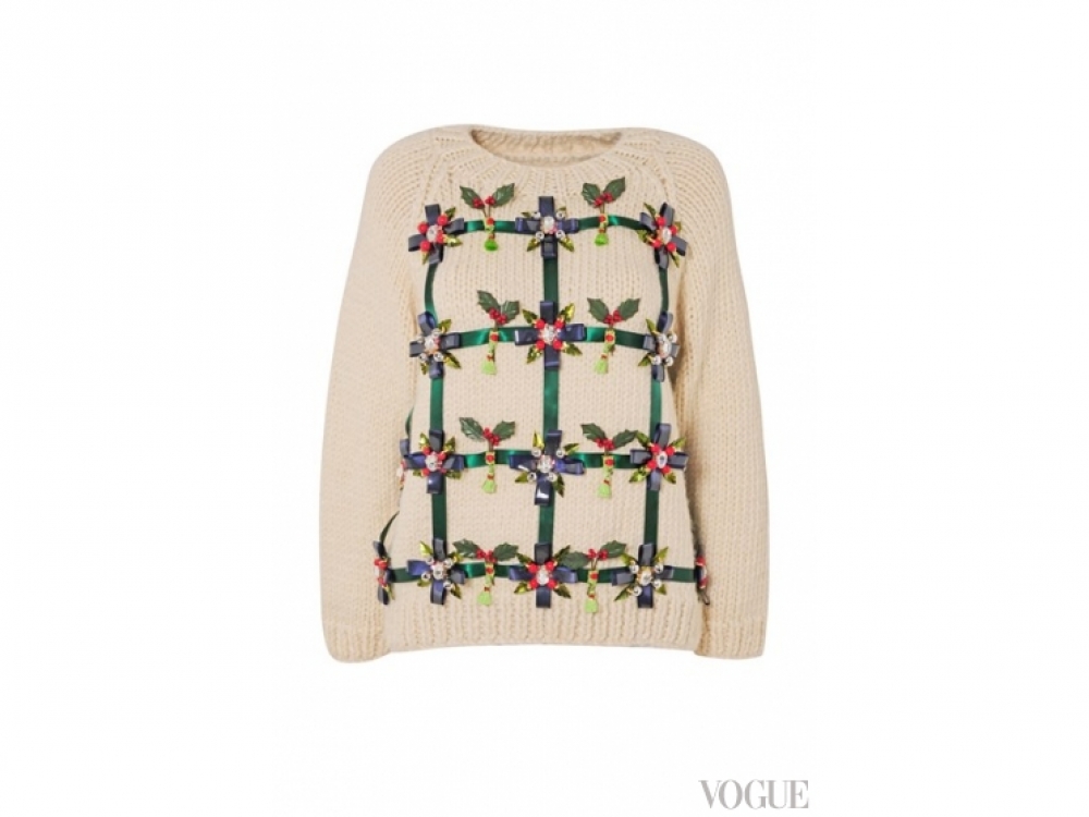 Дизайнеры-участники подошли к созданию праздничных свитеров весьма творчески - в Burberry разместили знаменитые лондонские достопримечательности и дополнили надписью Burberry with Love, в Vivienne Westwood украсили лентами, в Mary Katrantzou крупными кристаллами, а декор на свитере Alexander McQueen напоминает лепнину.