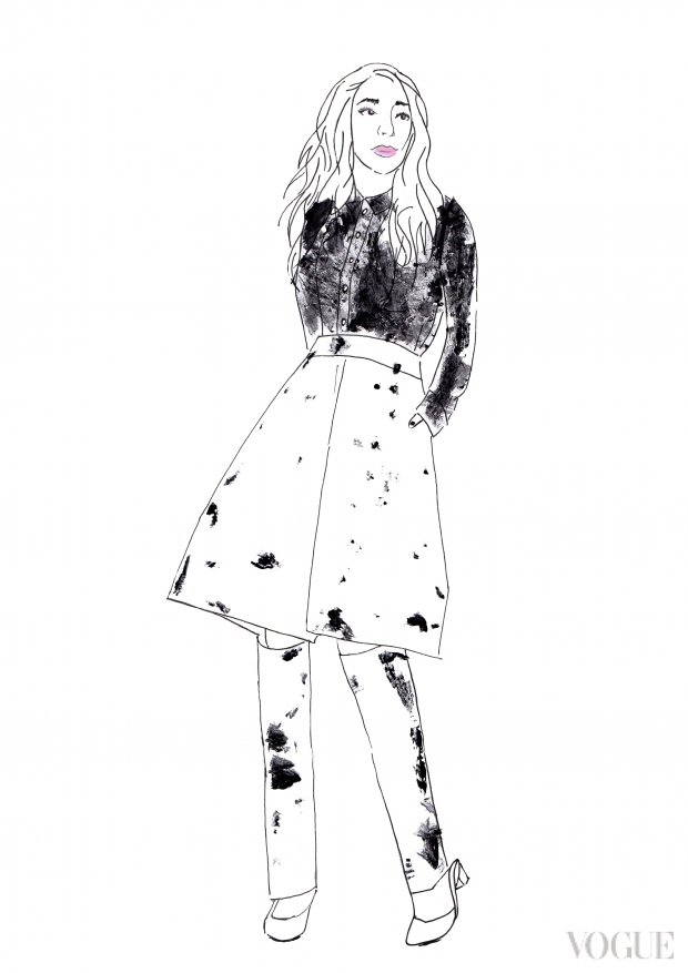 Лично я вижу брючный низ, так как я певица, которая движется по сцене, не танцует , а именно движется. Брюки придают устойчивую позицию на сцене, что важно именно для этой песни. Я представляю современную девушку, космополита, без привязки к какой-то определенной культуре. Она близка всем, и каждый увидит в ней себя. Я не против принтов и орнаментов.