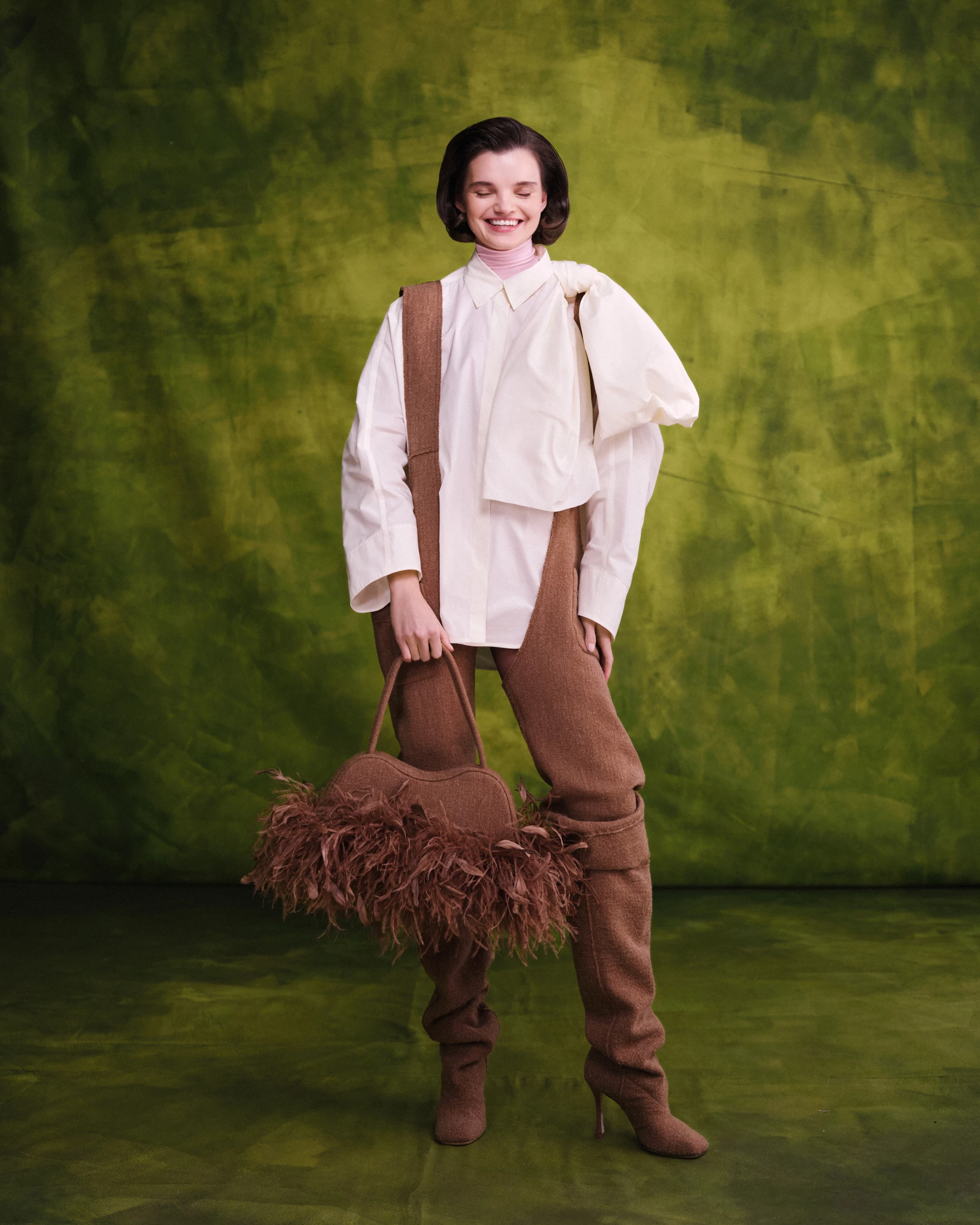 У цій колаборації майстерно поєднано мінімалізм бренду Poelle і характерна "родзинка", яка завжди притаманна The Coat. Робота з кольором та фактурами, використання пір’я створює дуже впізнаваний, тактильний, емоційний продукт, який закохує у себе.