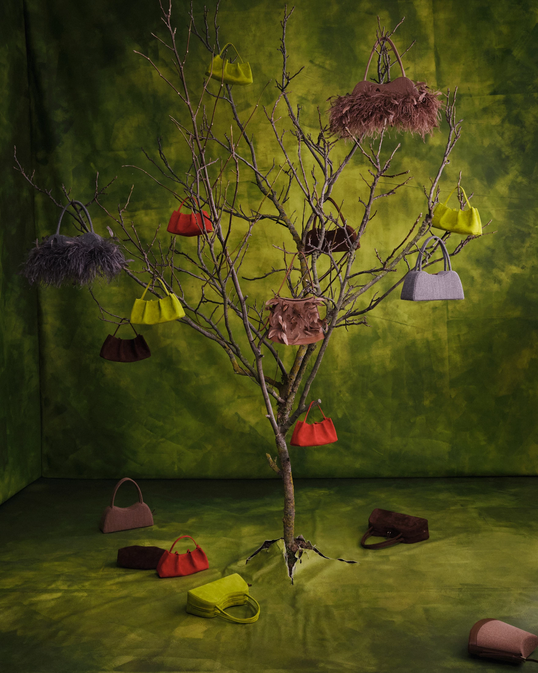 До колекції увійшли коктейльна сумка Debut у яскраво-червоному і лаймовому кольорах, ефектна Prima, доступна у двох розмірах та з декором у вигляді пірʼя, а також бестселлер бренду Poelle – сумка Bell, переосмислена командою The Coat у нових матеріалах.