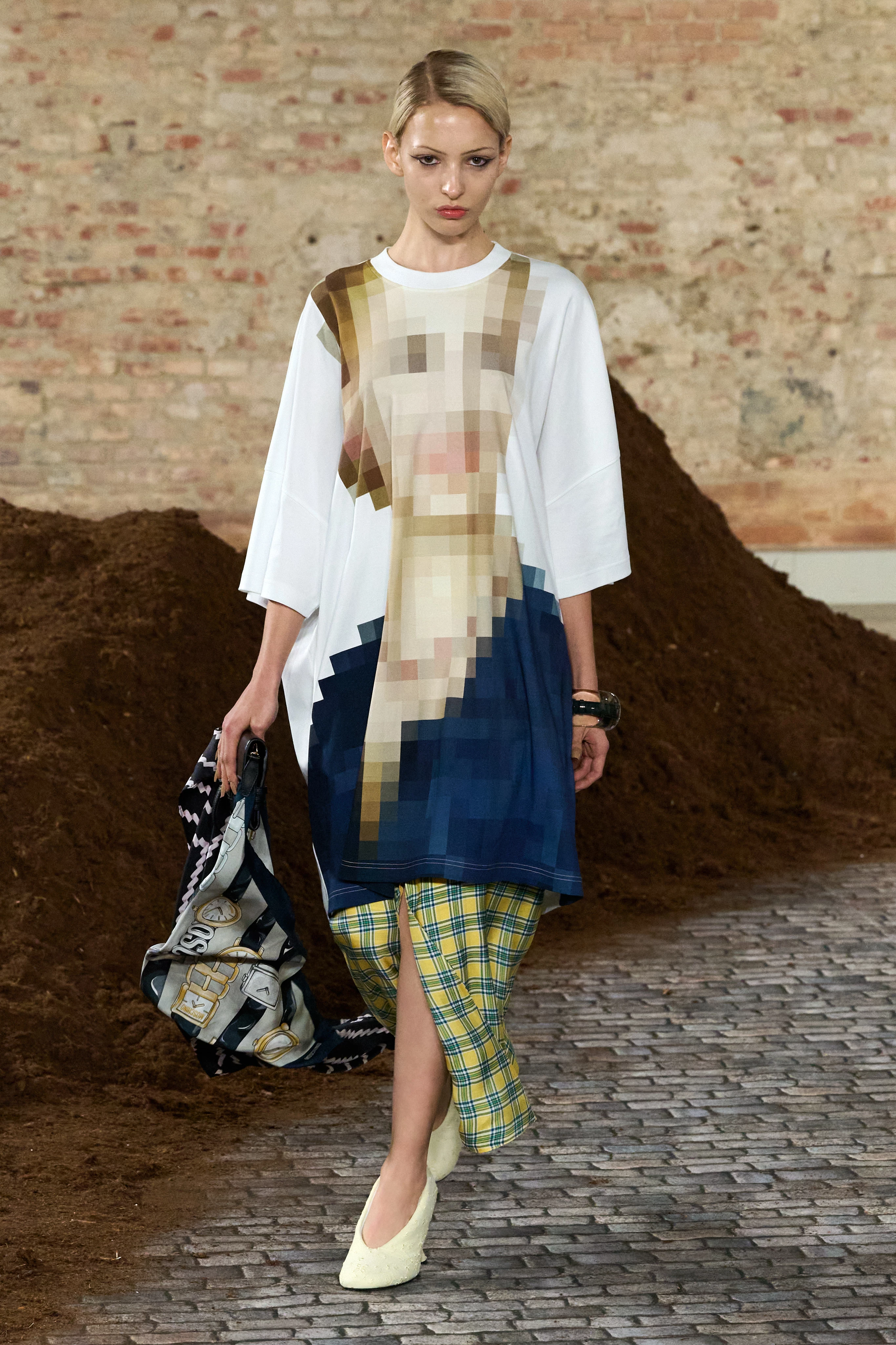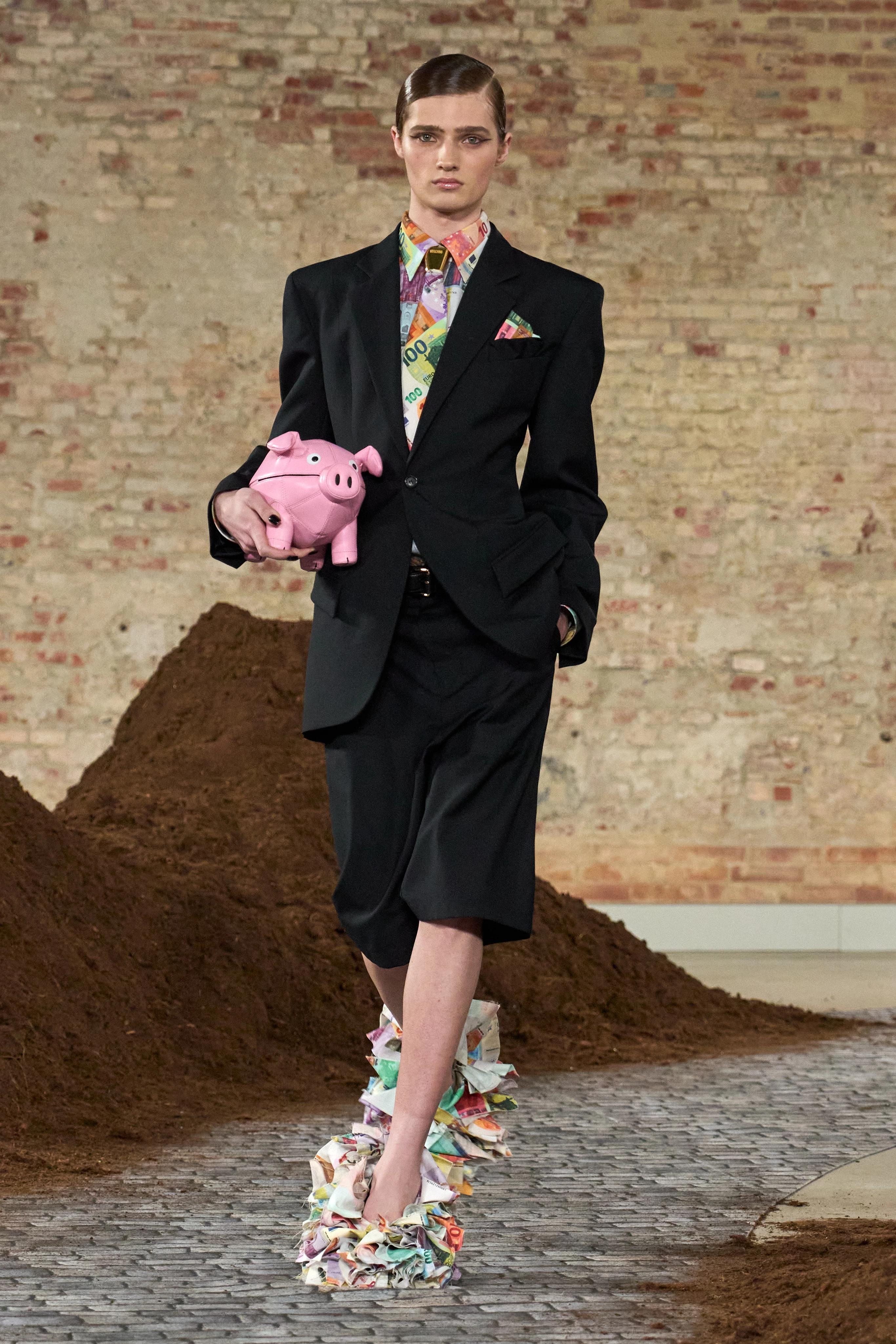 На подіумі гості побачили і буржуазних леді у вишуканих нарядах, і водійок автобусів, і футбольних фанаток, і пристрасних танцюристок танго. Аппіолазі вдалося поєднати спадщину Франко Москіно з власним корінням, не втративши при цьому фірмового гумору бренду. Це була не просто мода, а жива антропологія вулиць Буенос-Айреса, адаптована для світових подіумів. Особливу увагу дизайнер приділив filete porteño — декоративному стилю, який зазвичай можна побачити на аргентинських автобусах, вантажівках чи в інтер'єрах осель. На одязі він виглядав іронічно, яскраво та навіть театрально.