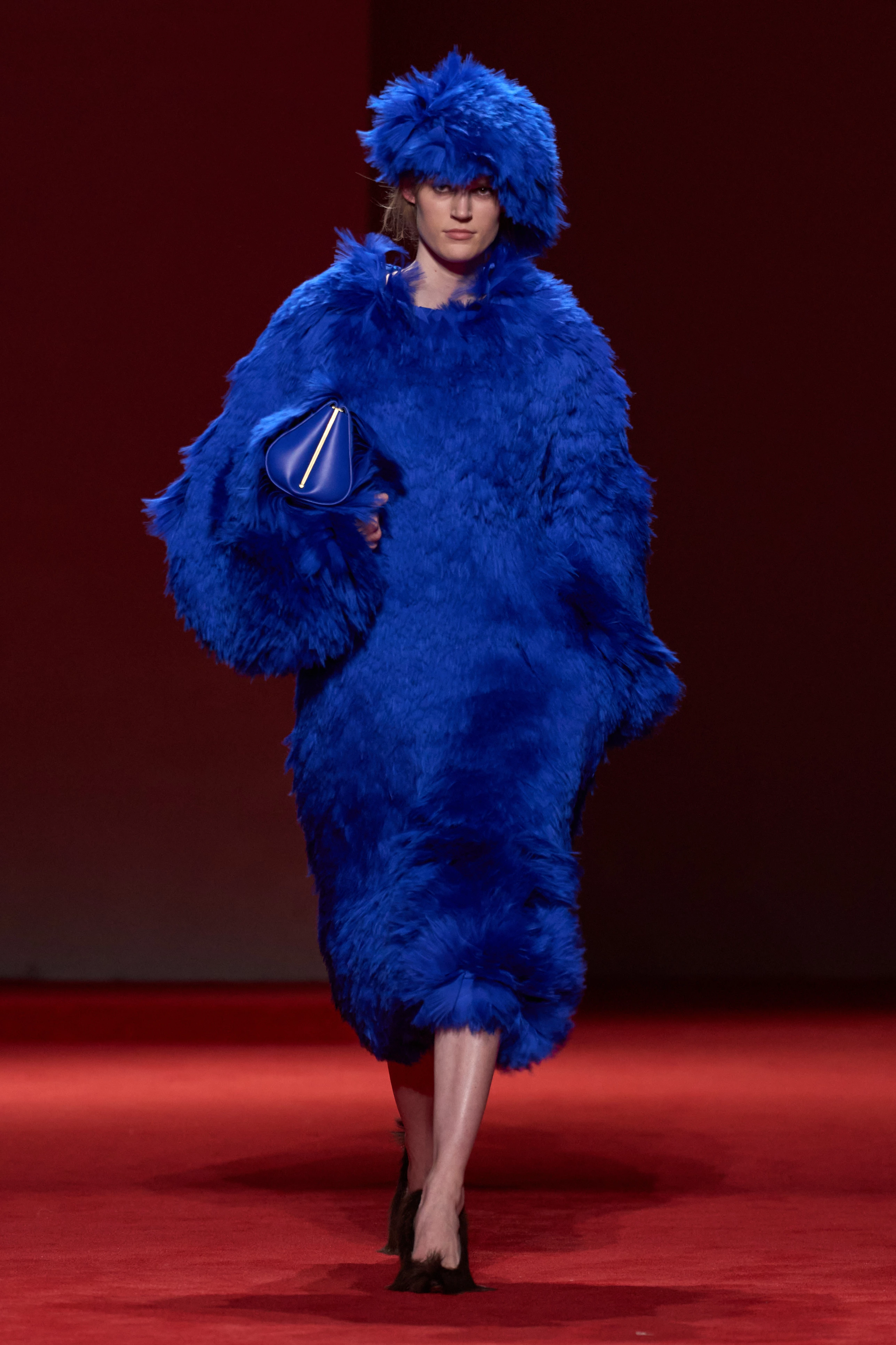 Якщо дебютна колекція Луїз Троттер для Bottega Veneta була присвячена культовому плетінню Intrecciato, то її друга робота стала присвятою пухнастим фактурам та екстремальним об’ємам.