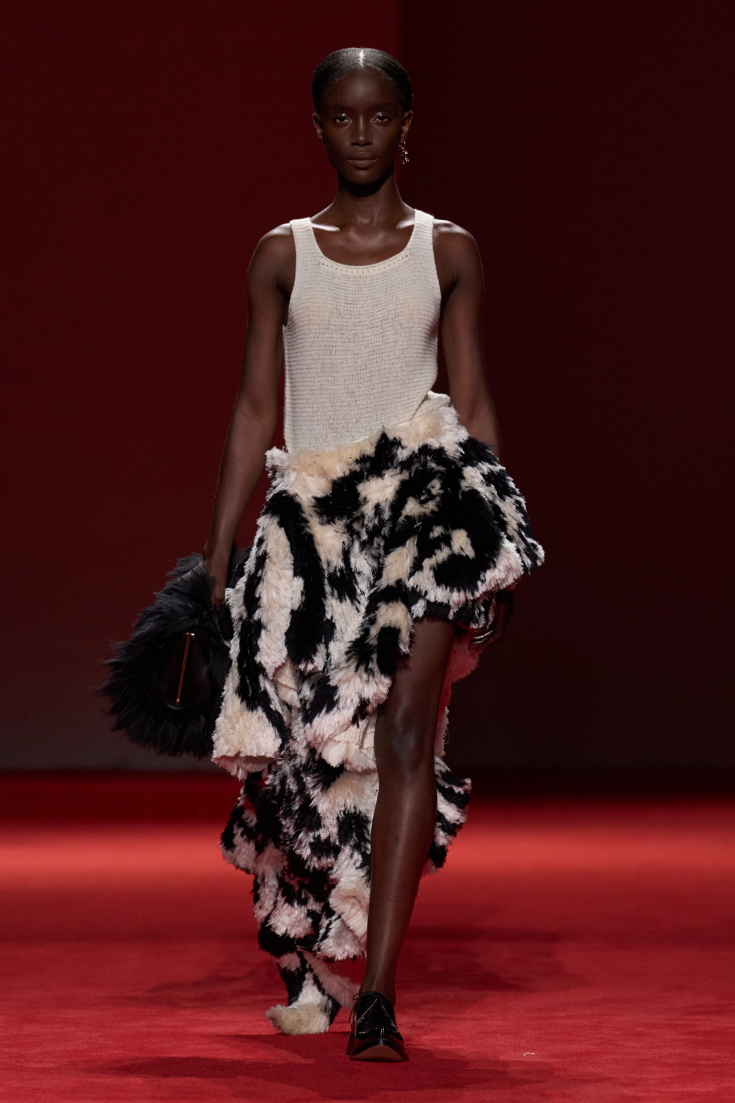В показі колекції осінь-зима 2026/27 прийняли участь близько 80 моделей, які буквально пронеслися подіумом перед гостями — в русі ці фактури виглядали особливо ефектно, вони ніби ожили. Для поціновувачів інновацій ця колекція стала насолодою для очей — Троттер продемонструвала приголомшливий спектр технік: стьобана овчина ручного фарбування, пухнастий трикотаж, рифлені текстури, що нагадують лакрицю. "Я працюю з неймовірними артизанами, і пошук нових форм ремесла — це основа всього, що ми робимо", — зазначила дизайнерка після показу. І це не просто слова: кожен вихід був демонстрацією того, як традиційна розкіш може трансформуватися у футуристичний, майже тактильний досвід.