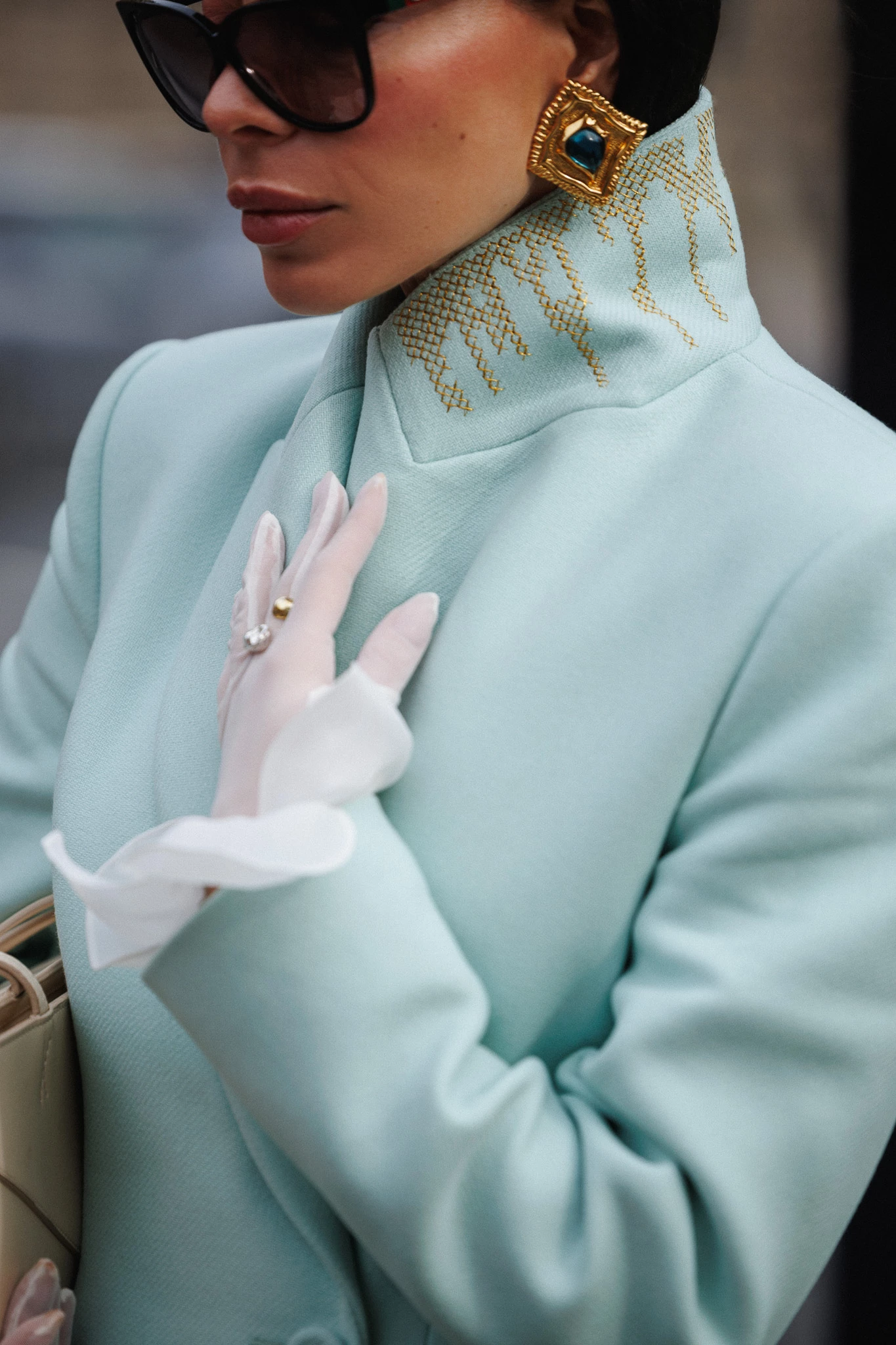 Колекція "Тканина говорить" – про впевнену жінку, яка визнає свої сильні сторони, любить себе та сміливо заявляє про це світові. До колекції увійшли пальта кейпи, оздоблені перлинами та коміром-стійкою, шкіряна мідіспідниця-колона із розрізом, елегантне блакитне приталене пальто із вишивкою на комірі. Доповнили створені образи актуальні аксесуари: довгі шкіряні рукавиці, капелюшок-таблетка та фактурні клатчі.