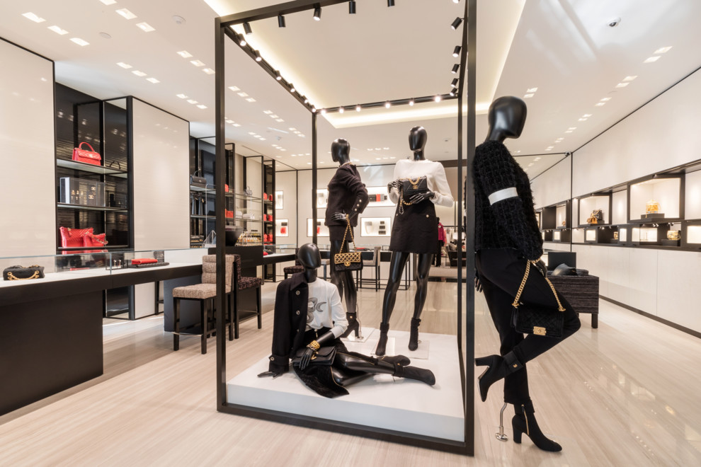 Бутик CHANEL у КиєвіНовий інтер’єр бутика розробив архітектор Пітер Маріно, так само як і проєкт першого бутика CHANEL у Києві 2009 року. Внутрішнє оздоблення бутика дотримує кодів Дому й утілює сучасний та елегантний дух CHANEL. У всьому просторі бутика, що являє собою серію салонів, гармонійно поєднаних між собою, знакова палітра бежевого, білого й чорного кольорів із золотими акцентами така ж ефектна, як і раніше. Збільшення простору бутика до 290 квадратних метрів дає змогу ознайомити клієнтів з колекцією Ready-to-Wear, яка тепер представлена у двох салонах, один з яких на бажання можна трансформувати в приватну зону.