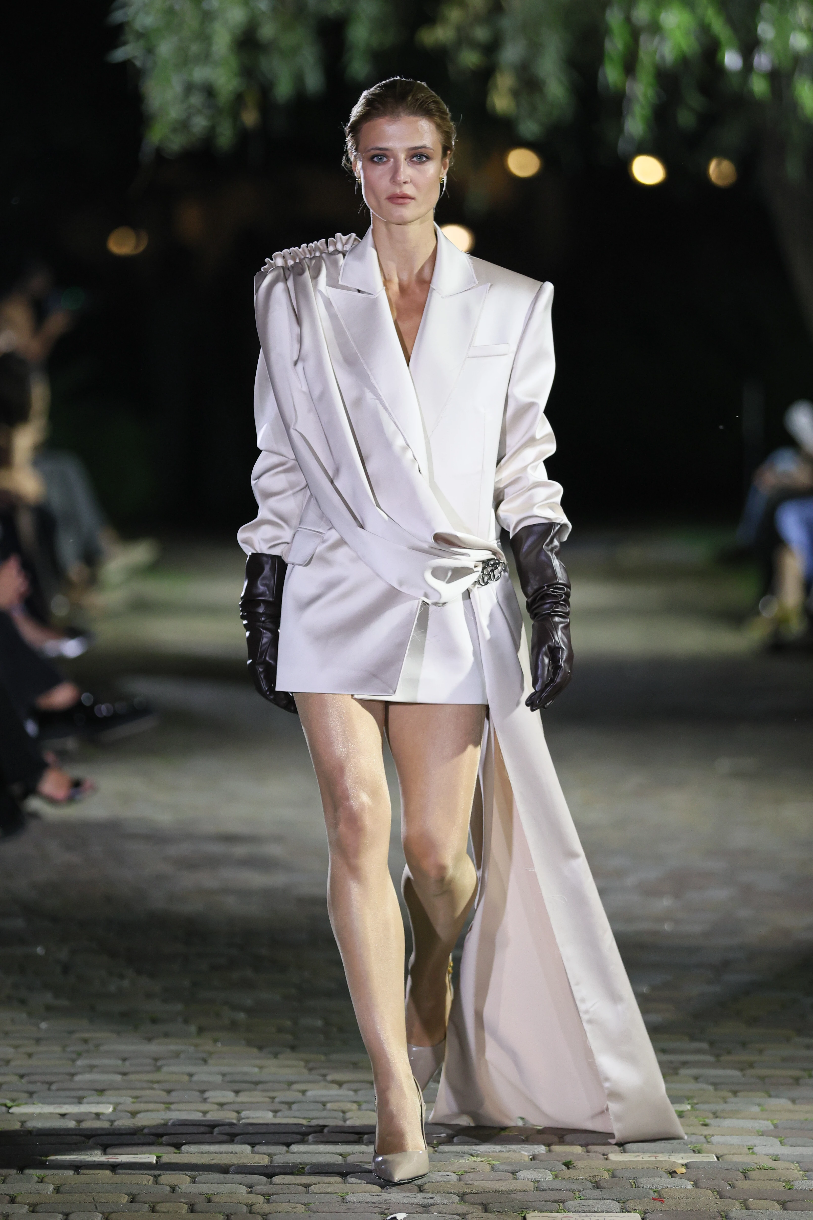 Сукні-жакети з рожевого сатину, видовжені кейпи, об’ємні рукави й драматичні силуети SANTA повертають до золотої доби Голлівуду, коли на срібних екранах магію сцени творила гра тіні й світла. Асиметрія й розгорнуті форми додають напруги, мов кадри з кіно 1930-х. "Ми відмовляємося від зовнішнього блиску, щоб відкрити глибше джерело сяйва — сяйво самої жінки", – додають у бренді.