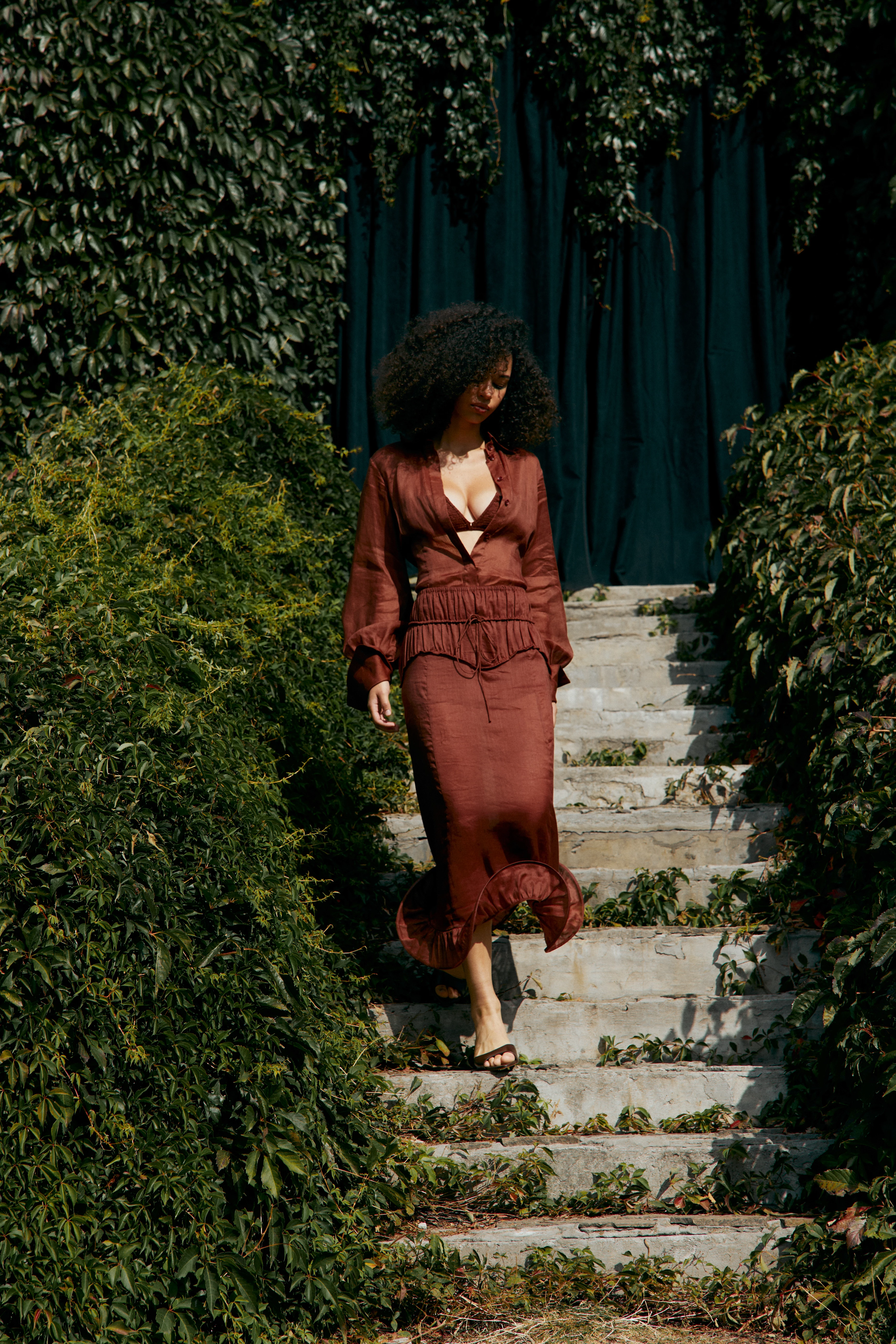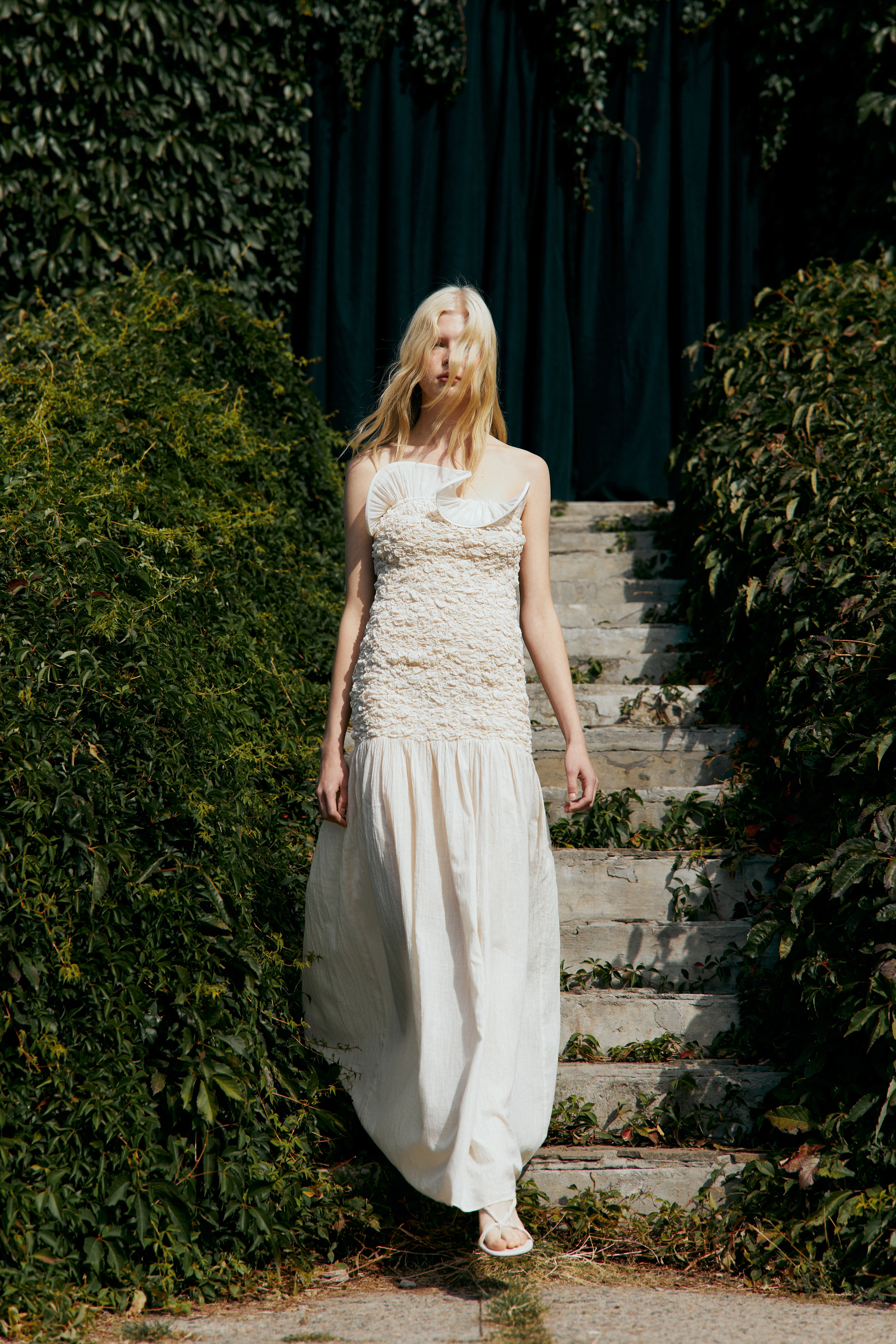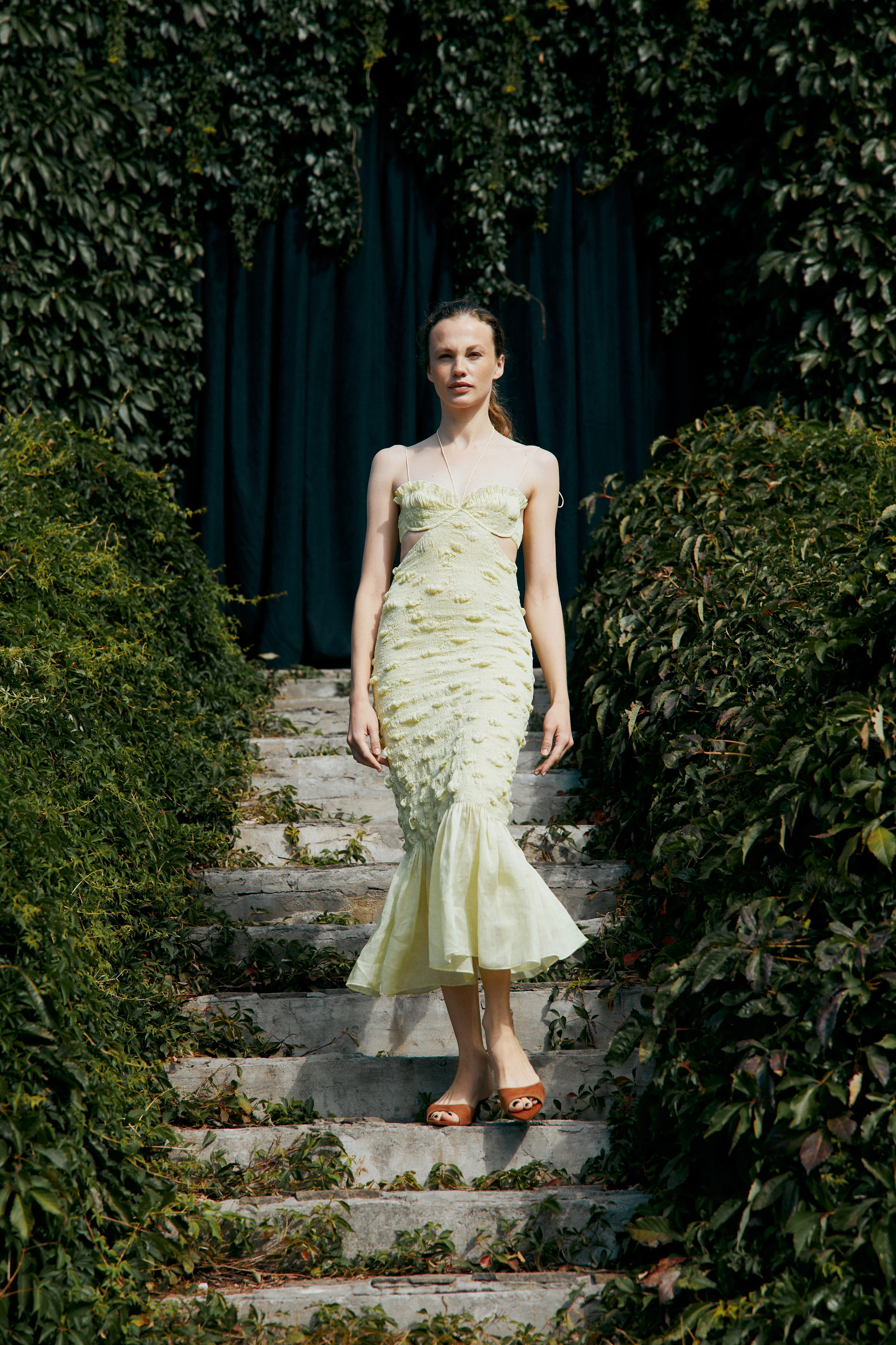 Підкреслити ідею колекції бренд вирішив за допомогою вибору місця презентації – у ботанічному саду імені Гришка. Всі вироби створені з натуральних матеріалів: рамі (кропива), льону та бавовни. Фактурні поверхні, бахрома, об’ємні силуети й м’яка жатка передають органічне відчуття руху — ніби одяг росте разом із нами, як врожай, що дозріває в жіночому саду.