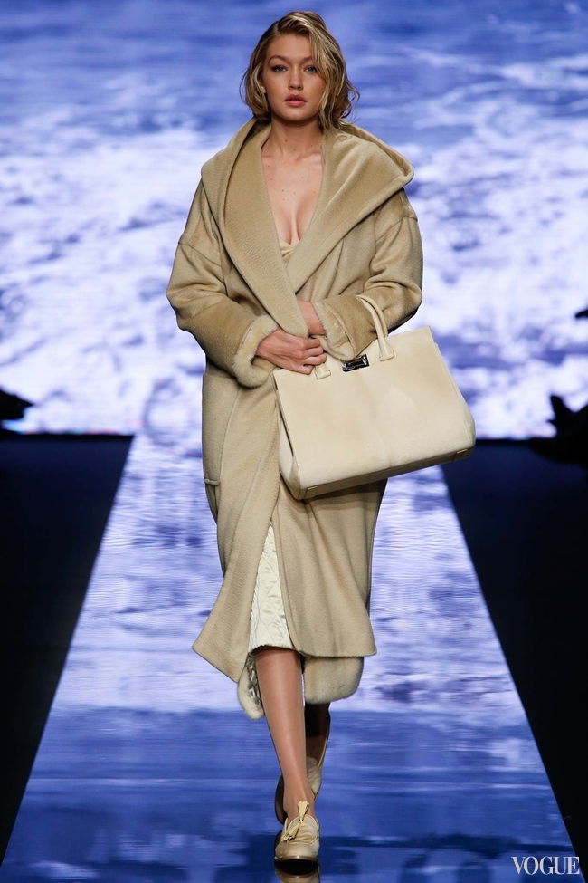 Пальто также не остались в стороне от влияния домашней одежды. В новом сезоне они больше напоминают объемные банные халаты. Идеально этот образ воплотила Джиджи Хадид на шоу Max Mara.