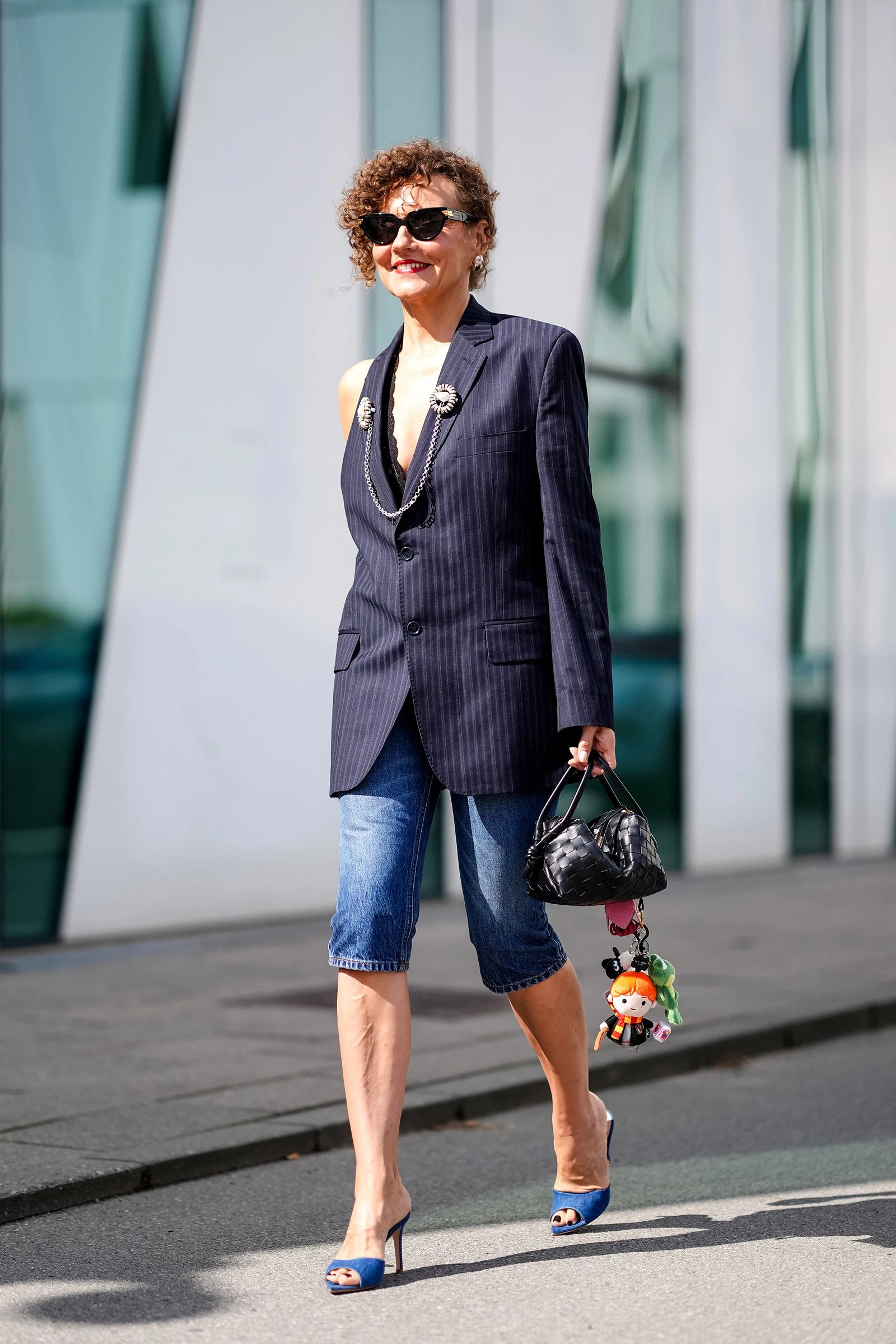 Якщо ви хочете створити більш розслаблений образ, оберіть капрі з деніму. Такі моделі з’являлися в колекції Marc Jacobs ще у 2000 році. До них варто додати блейзер у тонку смужку та босоніжки. У результаті виходить стильний і сучасний образ. У поєднанні з виразними аксесуарами він легко привертає увагу.
