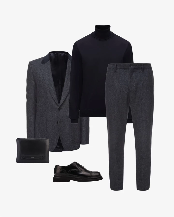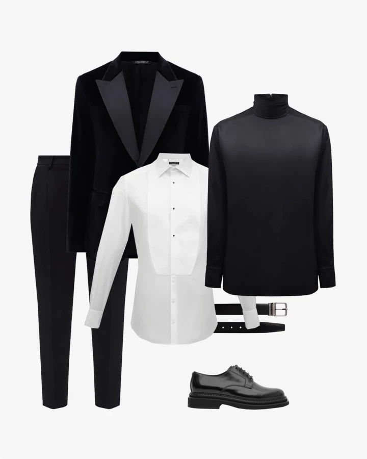 Класика чоловічого гардеробу залишається поза часом – і цей рік не виняток. Костюм бездоганного крою, біла сорочка, лаковані туфлі та шовкова хустка, що ледь визирає з нагрудної кишені, формують еталонний образ для особливої нагоди. Аби знизити рівень формальності, замініть сорочку на вовняну водолазку щільної фактури – стильний прийом, який додає образу сучасного характеру.