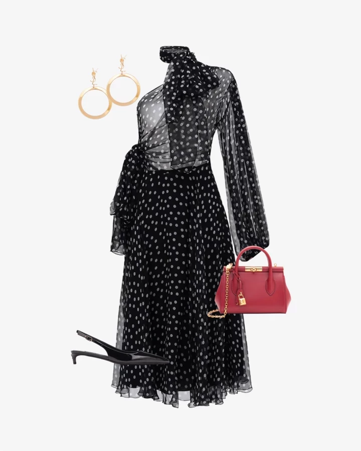 Лелітки, стрази, розсипи блискучих каменів – що ще краще передає святковий настрій? Цього року радимо створити образ із справжньою вишуканістю: сяйлива мінісукня Mach&Mach стане ідеальною основою, яку варто доповнити блейзером з атласними лацканами та аксесуарами насиченого бордового відтінку. Для тих, хто обирає більш стриманий стиль, ідеальною буде максісукня з делікатними розрізами та блискучими акцентами. Додайте лише улюблені перлинні сережки та актуальні туфлі-панчохи – і ошатній святковий образ готовий. Крім того, поціновувачки класики неодмінно оцінять сукню з принтом polka dot. Цього сезону позачасовий візерунок заграв на асиметричній моделі з виразним бантом, яка сама по собі стає головним акцентом образу. Додайте яскраву малинову сумку, щоб наряд миттєво заграв святковими фарбами.