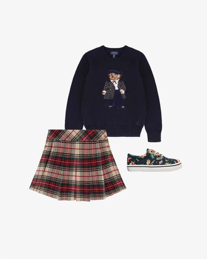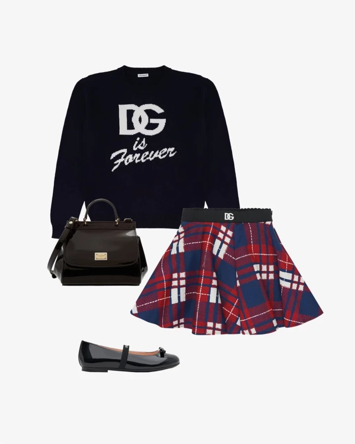 Картатий принт – безумовний гіт цієї зими, тож спідниця в клітинку стає обовʼязковою позицією в гардеробі маленьких модниць. Вона легко поєднується з джемперами, пуловерами чи светрами, щоразу змінюючи настрій образу – від повсякденного до святкового. Для ошатнішого вигляду додайте чорні балетки та мінісумку – майже як у мами, тільки ще миліше.