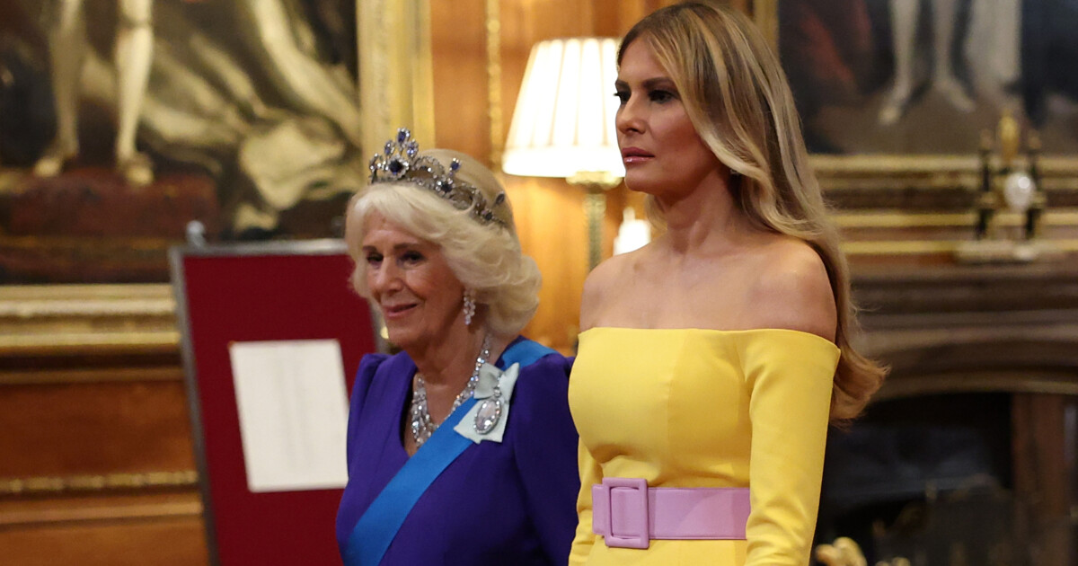 Підтримку Україні, хоч і невербально, висловили й головні жінки цього вечора – королева Камілла, принцеса Кетрін та Меланія Трамп. Соціальні мережі миттєво облетіло фото, на якому Каміла та Меланія вдягнені в сукні блакитного та жовтого кольору відповідно. Після слів короля про підтримку України це поєднання кольорів набуло особливо символічного змісту. Так, британська королева обрала шовкову сукню Fiona Clare і сапфірову тіару. Перша леді США довірила свій образ американському бренду Carolina Herrera. Неочікуваним елементом у її вбранні став акцентний ліловий пояс.