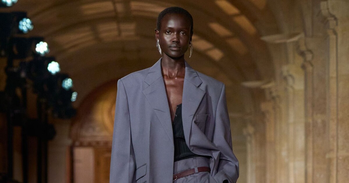 Діловий стиль неможливо уявити без відсилань до мінімалізму 1990-х. У колекції весна-літо 2026 Victoria Beckham зробили ставку на чистоті ліній: сірий штанний костюм поєднався з делікатним чорним топом на тонких бретелях й завершився бордовими човниками. Силует отримав бездоганний вигляд — стриманий, витончений та позачасовий.