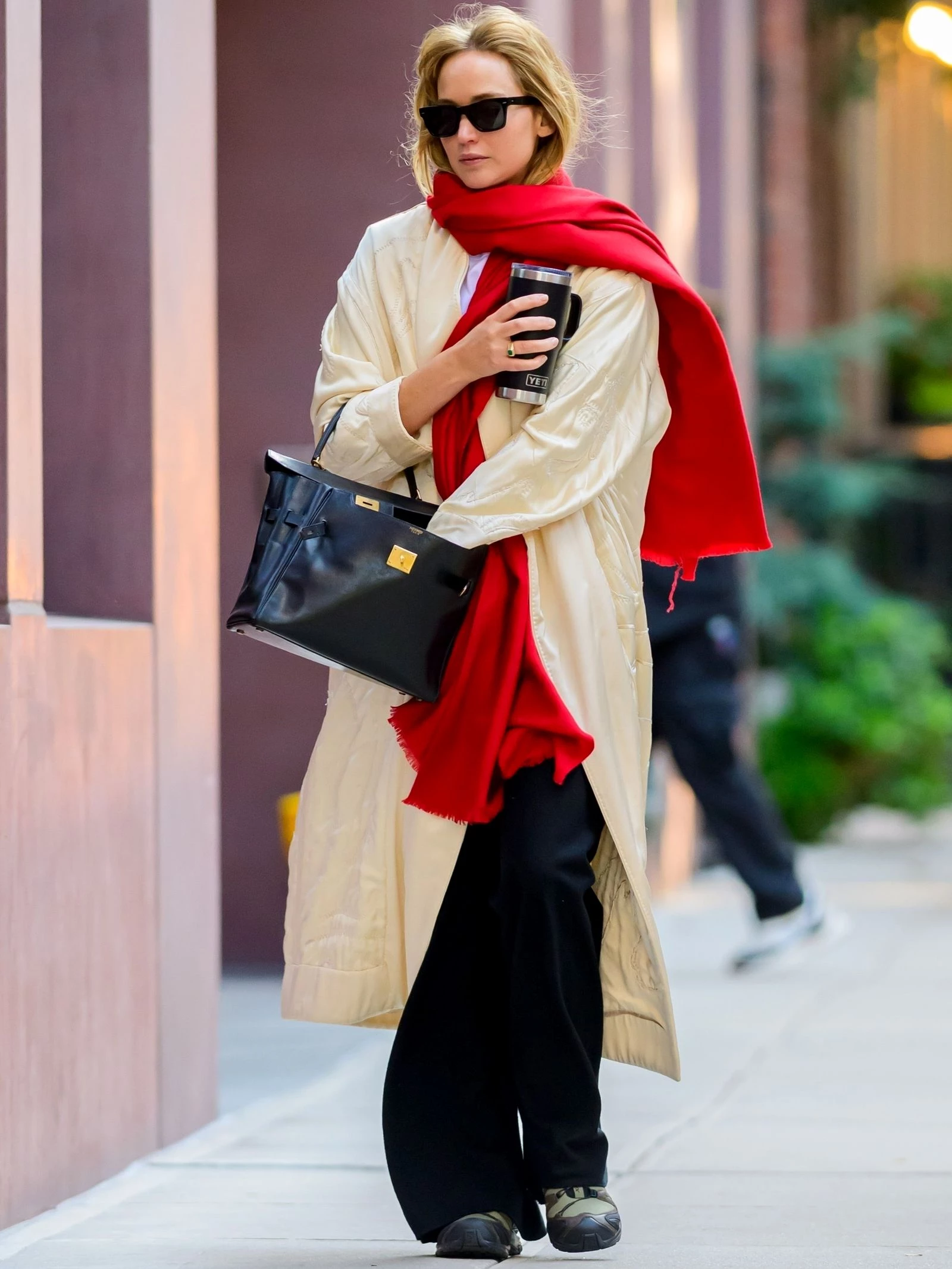 У 2025-му Дженніфер Лоуренс провела майстерклас з багатошарових образів для щоденних виходів. Особливо публіці запамʼяталася її любов до мінімалістичних нарядів Phoebe Philo та The Row, а також вміння майстерно використовувати перевірений прийом із яскравим червоним акцентом.