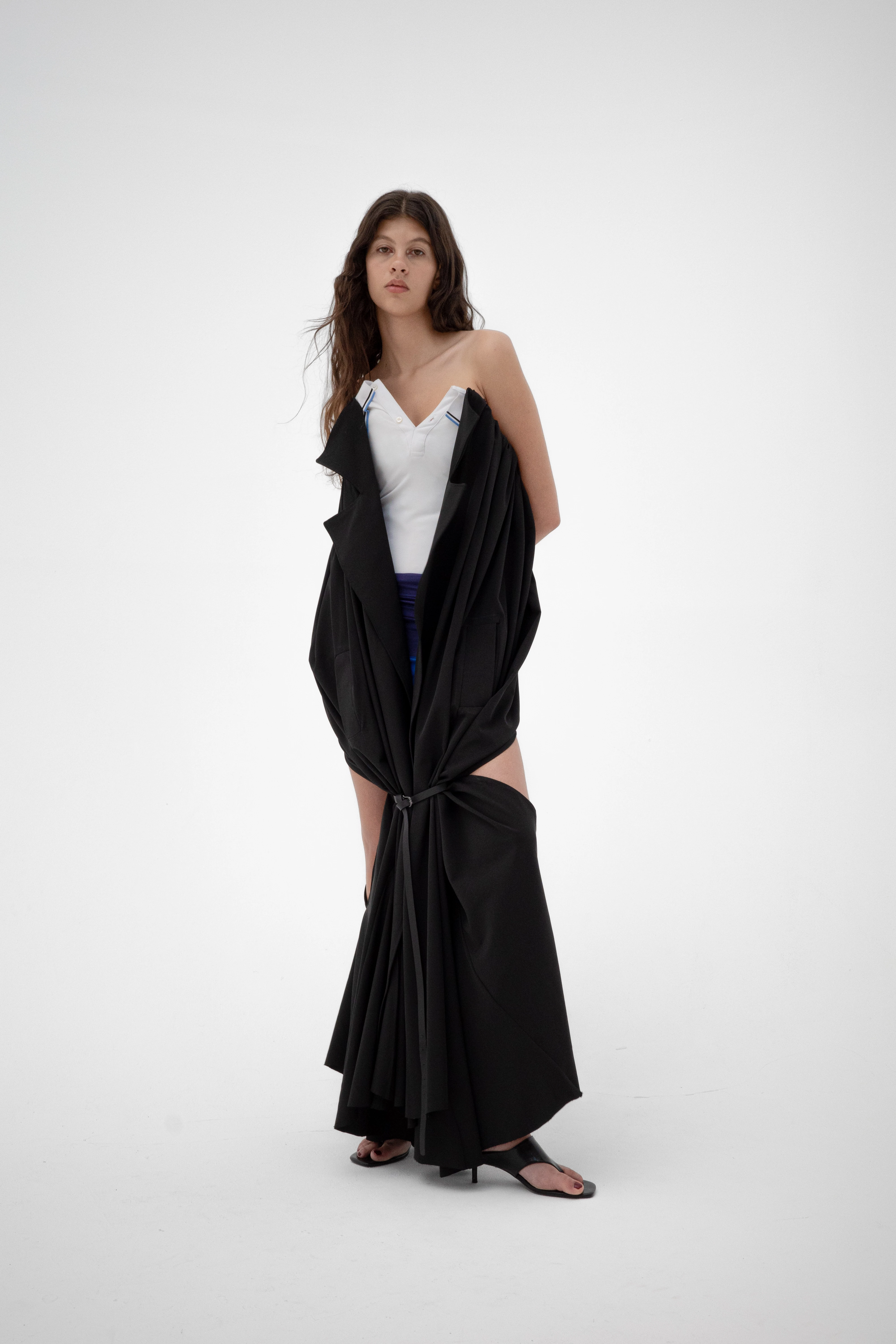 Дотепне, екстравагантне й водночас цілком придатне для носіння в реальному житті вбрання Lyrone Journo народжується з уваги до буденних жестів. Рушники, що звисають на гачках, надихають дизайнера на створення невагомих суконь з ефектом левітації, які чутливо відгукуються на кожен порух тіла; стоси книжок у різномасних палітурках на полиці – на скульптурні шкіряні топи-бандо.