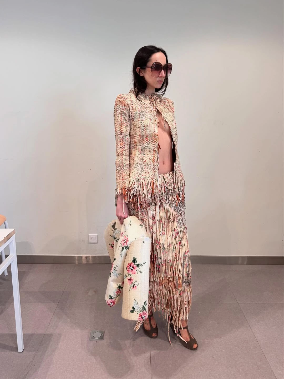 Головний виклик для Амандін сьогодні – знайти баланс між бажанням рухатися вперед і потребою дати собі простір для подальшого навчання й експериментів. Цього року вона розпочала стажування в паризькому ательє Alaïa, де працює з тейлорингом – точним і вимогливим ремеслом, що формує глибоке розуміння конструкції та пропорцій одягу.