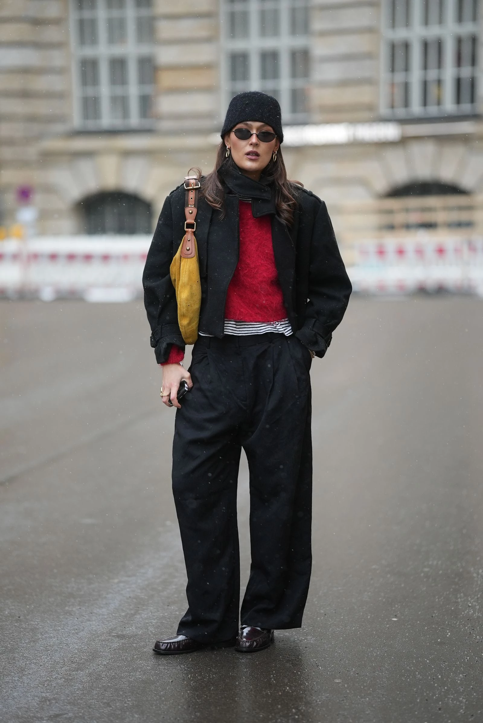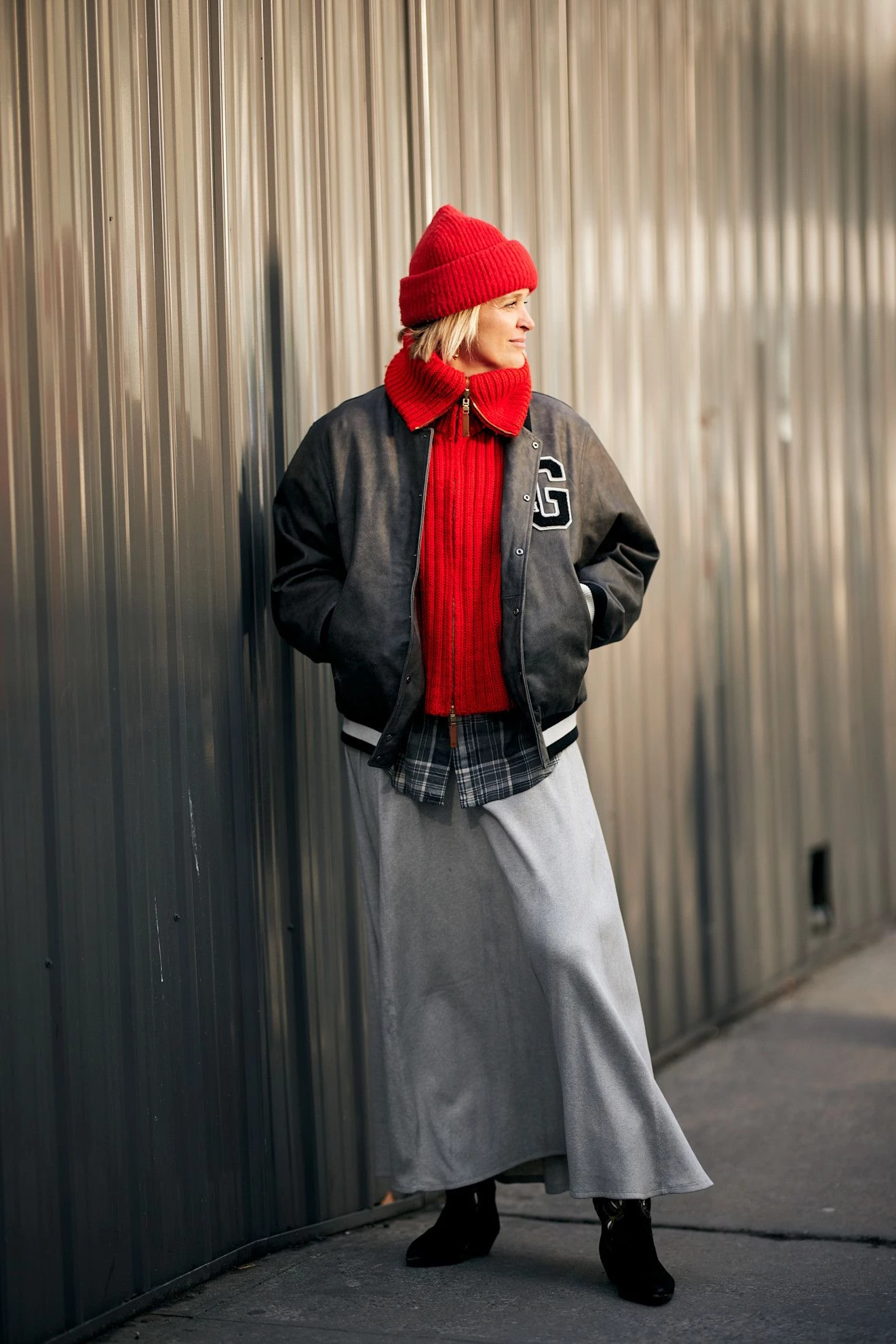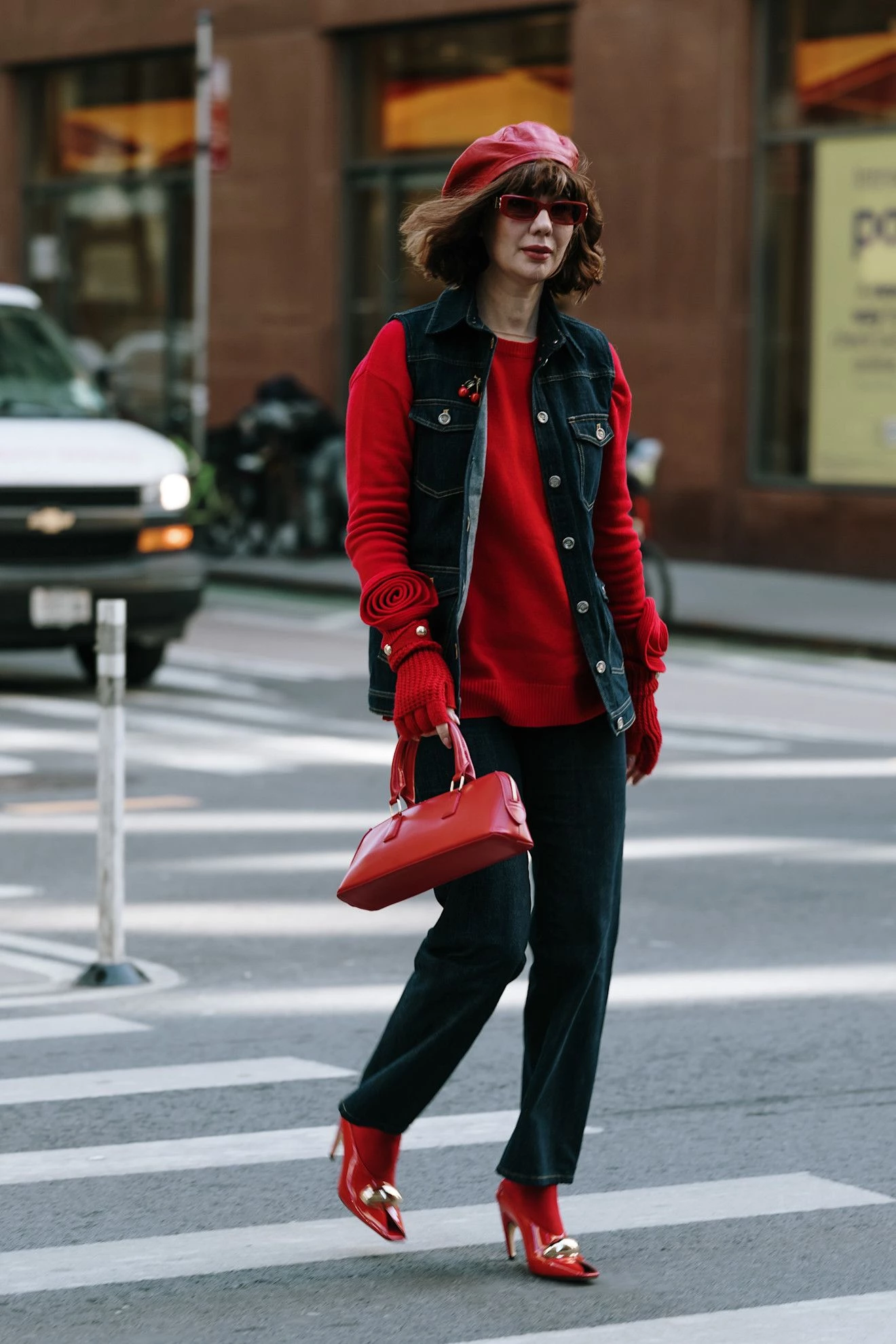 Червоний колір чудово римується з безліччю відтінків, а синій денім – один із найкращих союзників. Темна спідниця А-силуету, вільні джинси чи подовжений oversize-жилет – варіантів безліч. А якщо сумніваєтеся, просто накиньте светр на плечі або зав’яжіть на шиї поверх образу – ця яскрава деталь миттєво покращить будь-який зимовий образ.