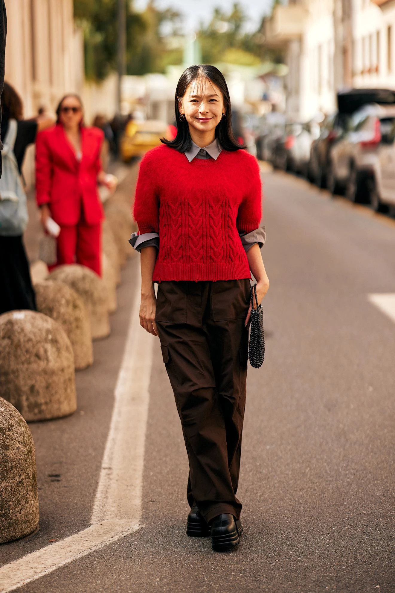 Червоний светр – ідеальний союзник для універсальних образів без зайвих роздумів перед шафою. Чорний, звісно, очолює список, але не менш вдало виглядатимуть сірі відтінки у всіх варіаціях або вічний коричневий – один із головних фаворитів року. До того ж червоний светр допоможе "продовжити життя" білим штанам далеко за межами літнього сезону.