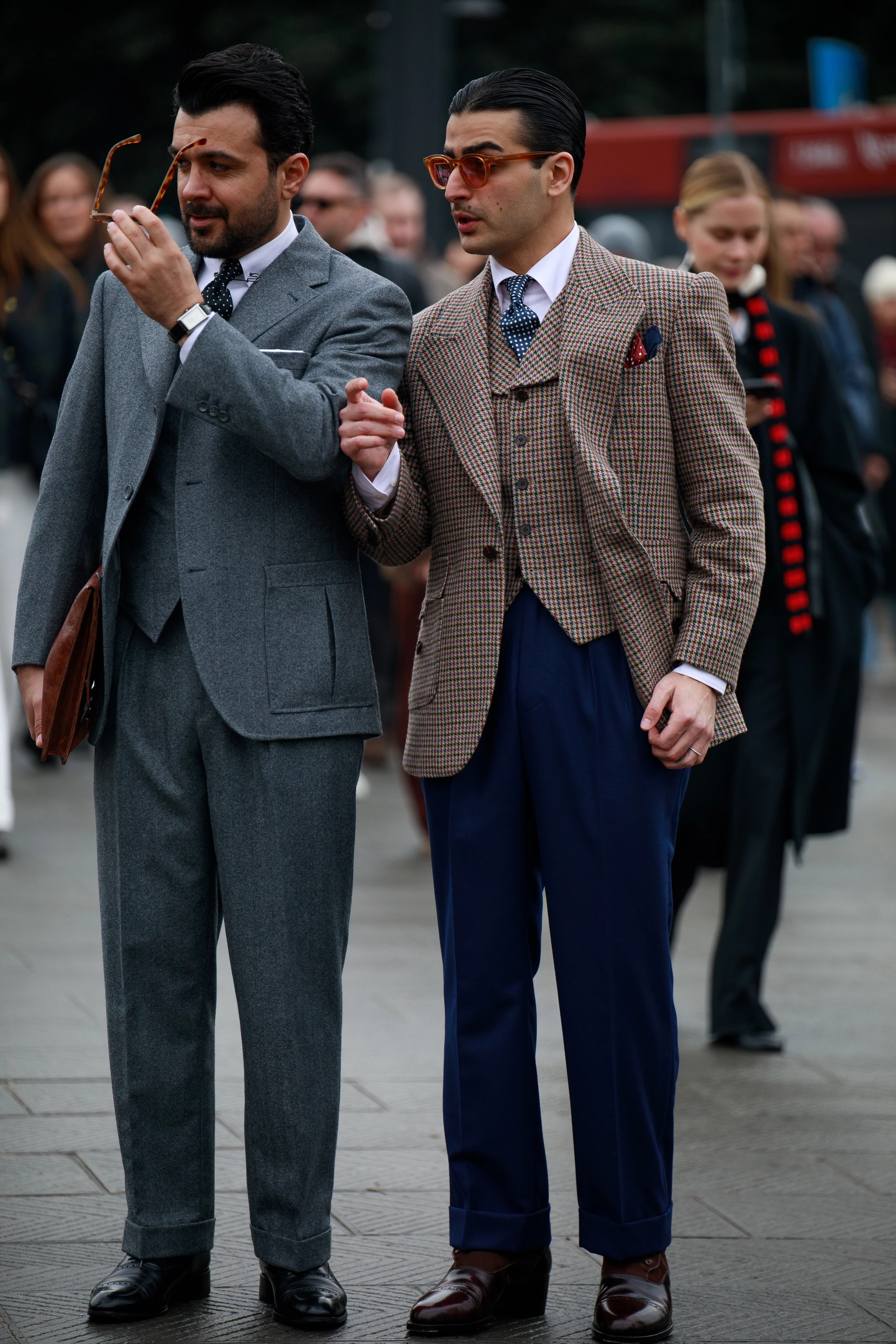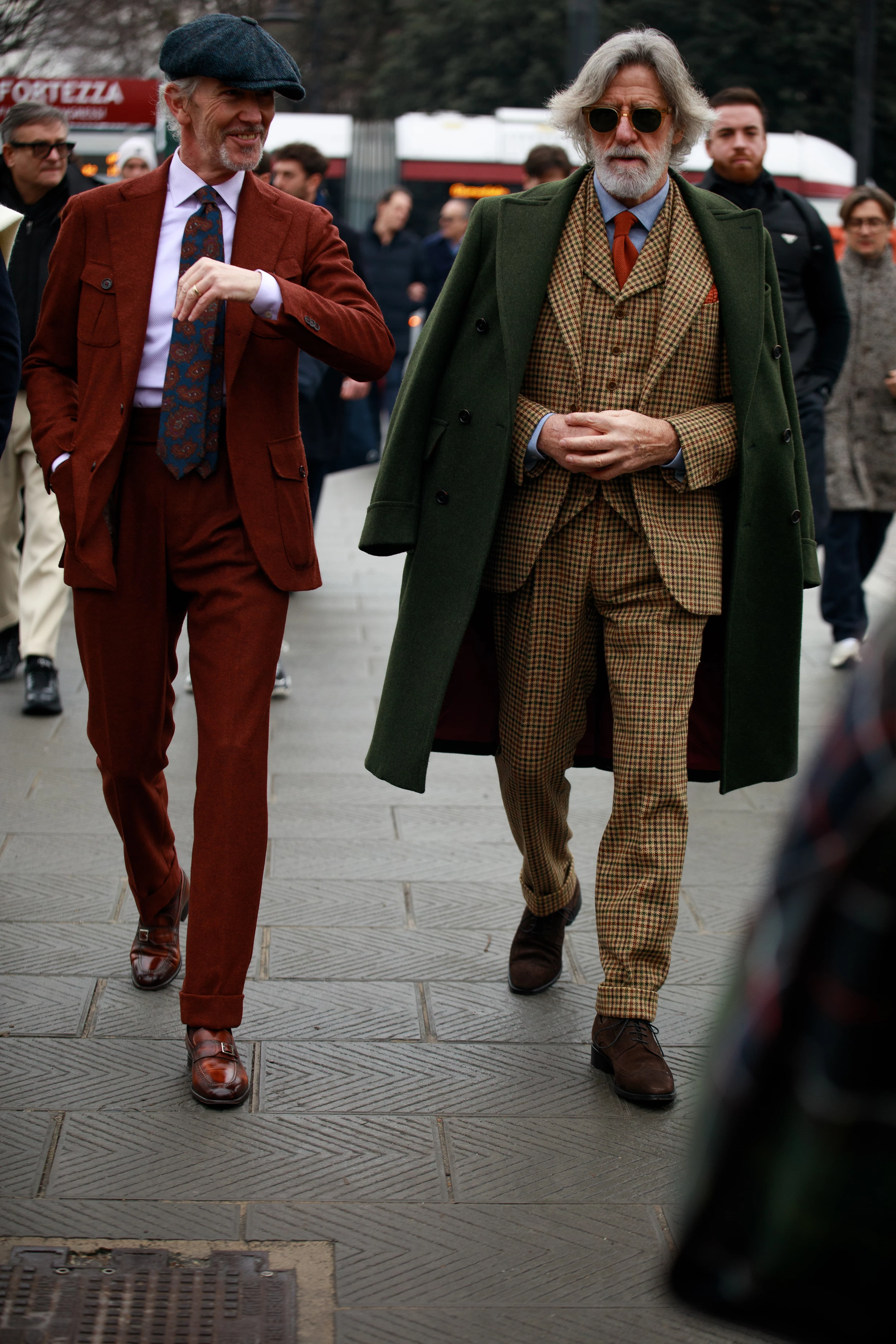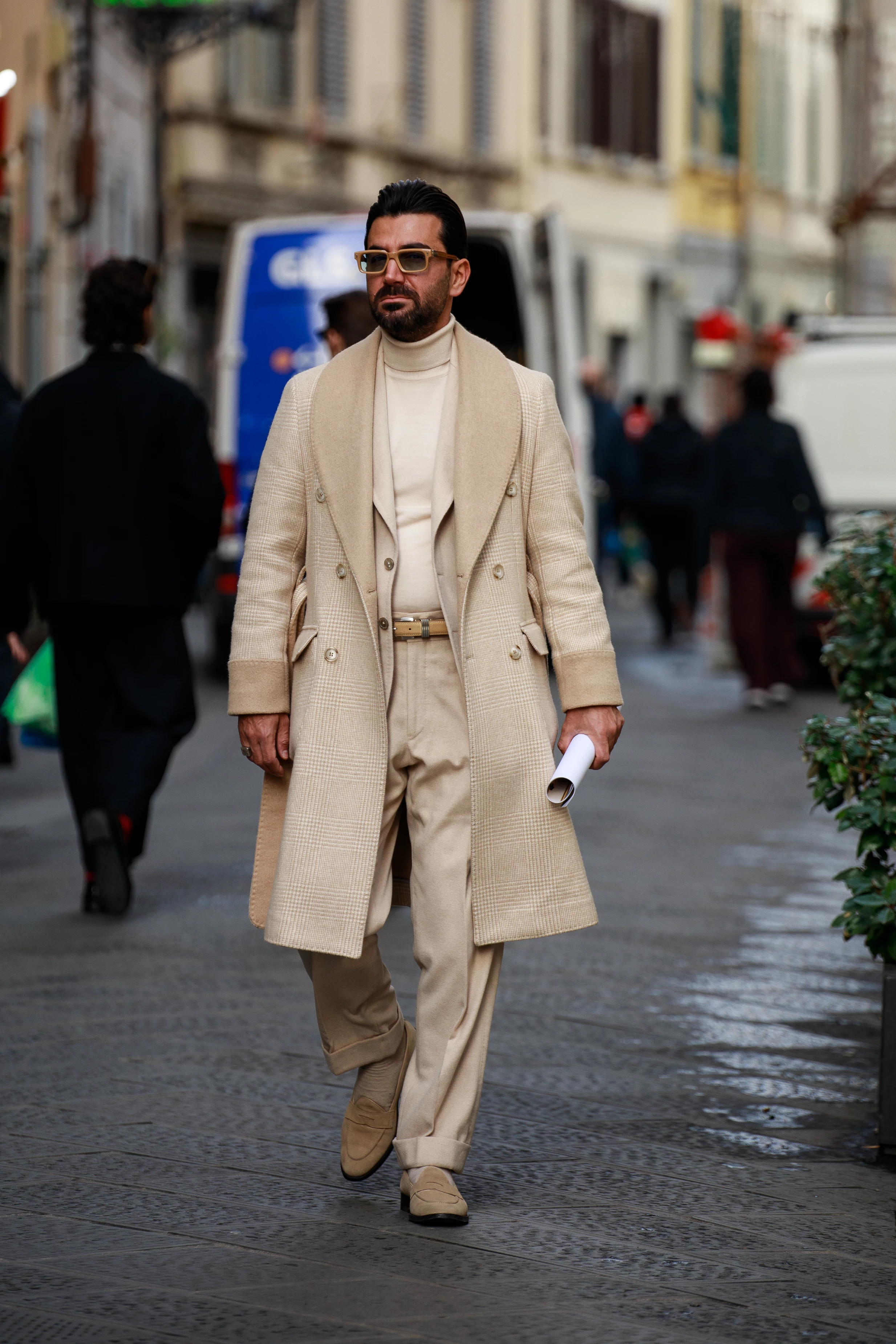 Pitti Uomo — найвідоміша виставка, присвячена чоловічому одягу, взуттю та аксесуарам — по традиції дала старт марафону модних подій у новому році. У Флоренцію вже в 109-й раз з'їхалися найкращі представники світу чоловічої моди, а разом з ним і сотні гостей, розглядати образи яких справжня насолода для очей. У цьому сезоні багато хто з них повернувся до класики — костюми-трійки з високоякісної вовни, ідеально скроєні пальта та ретельно підібрані аксесуари були усюди. На фоні ностальгії, яка захлеснула соціальні мережі цього січня, таке повернення до основ виглядає абсолютно природньо. Роздивляємося образи найстильніших гостей виставки Pitti Uomo 109 в об'єктиві фотографки Мартини Мєржеєвської.