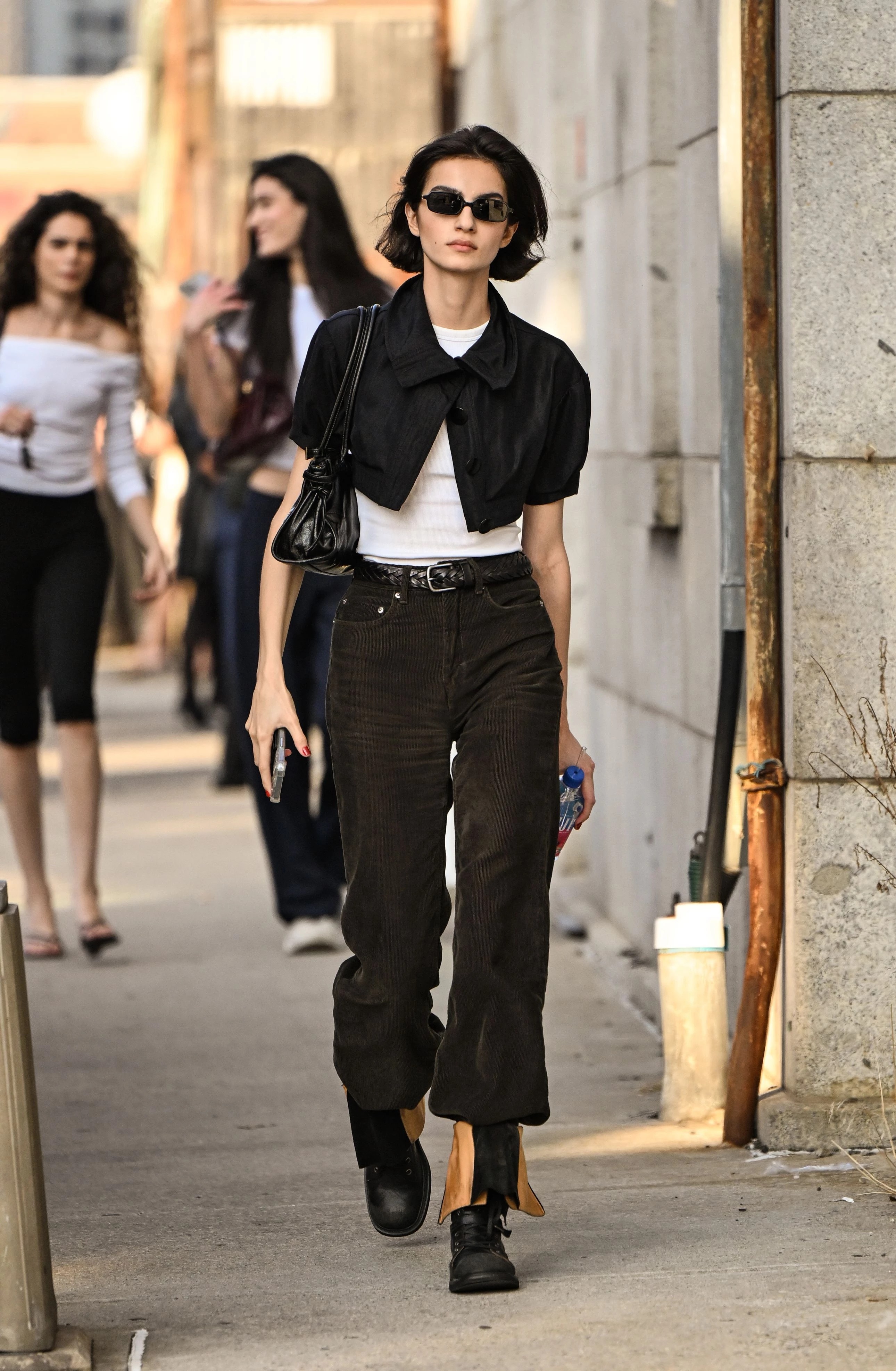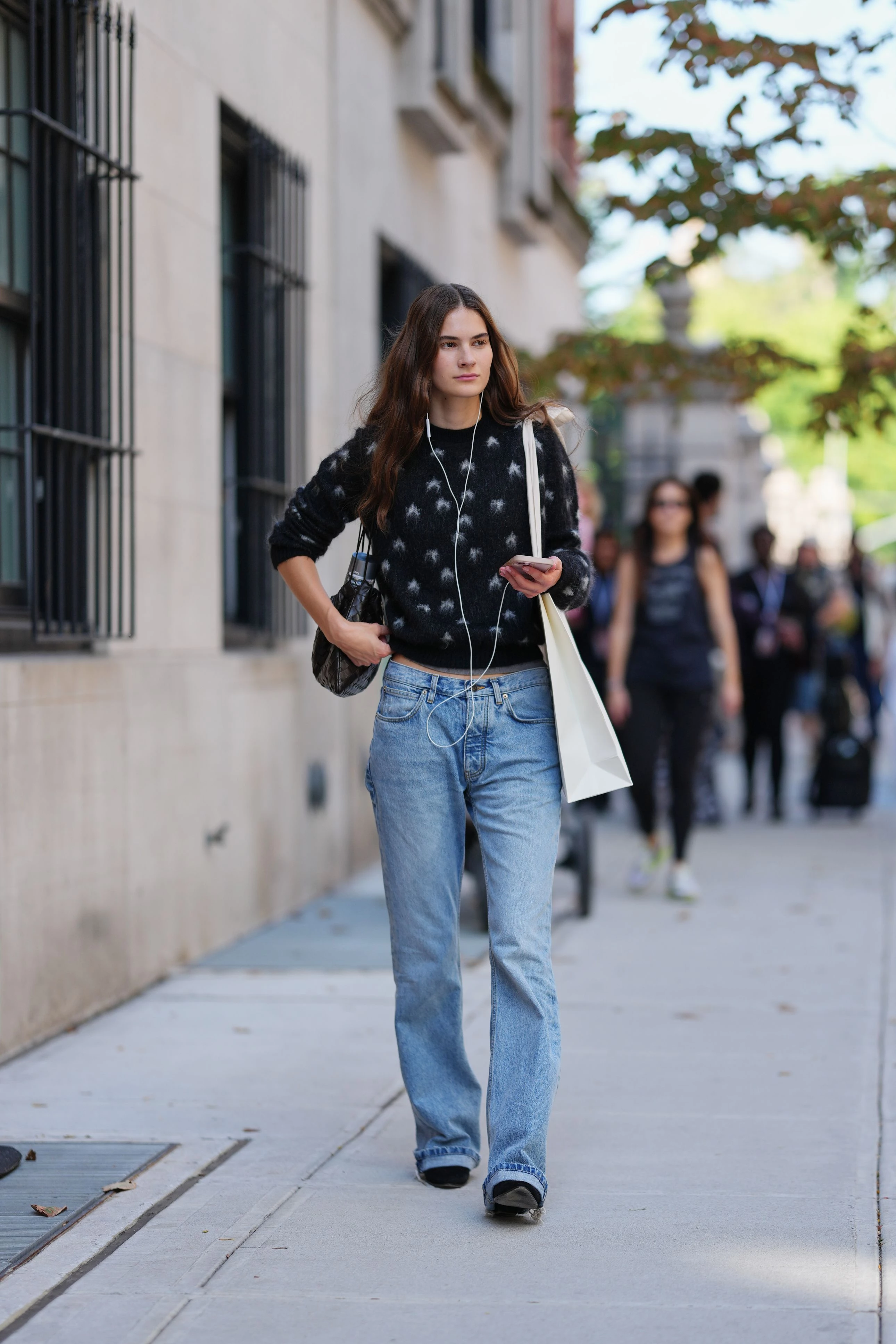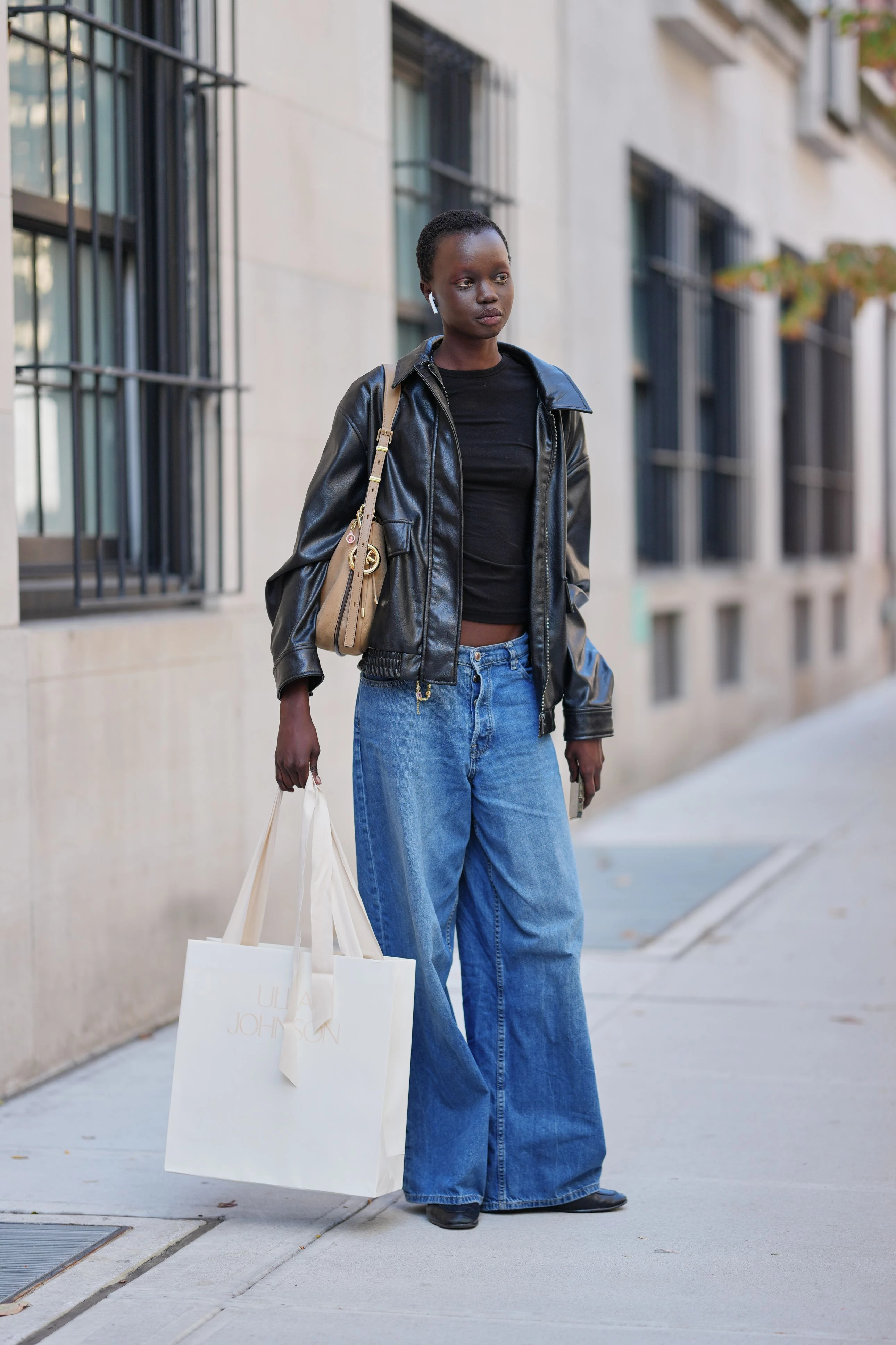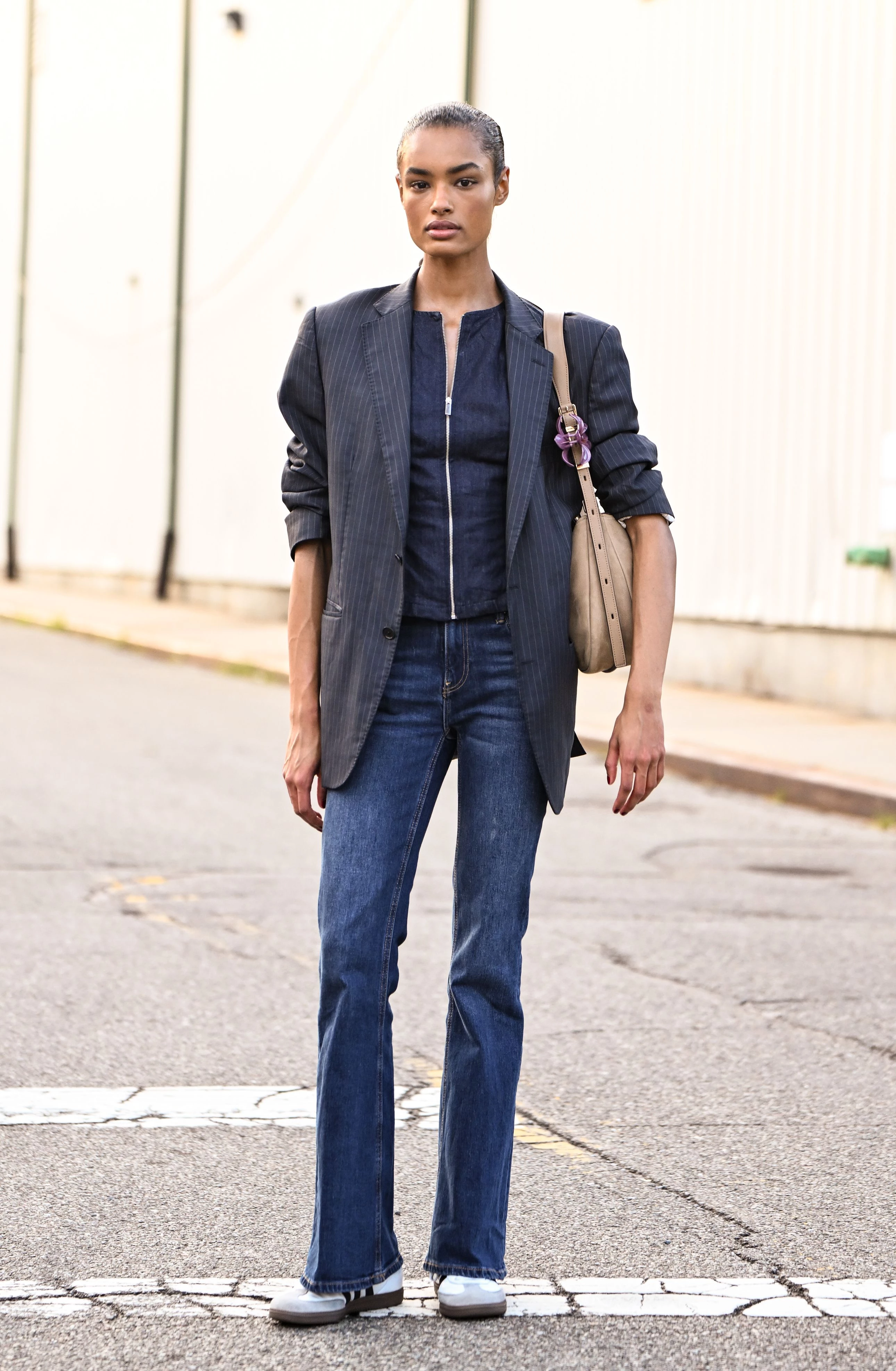 Головні тренди не обійшлися без класики. Моделі масово обирали базові речі, які завжди актуальні у вуличній моді. Джинси та прості майки залишаються улюбленим вибором, але Лолі Бахія показала альтернативний підхід. Вона створила образ у стилі томбой: вільна біла футболка, широкі джинси, замшеві кросівки adidas і утилітарна куртка Prada.