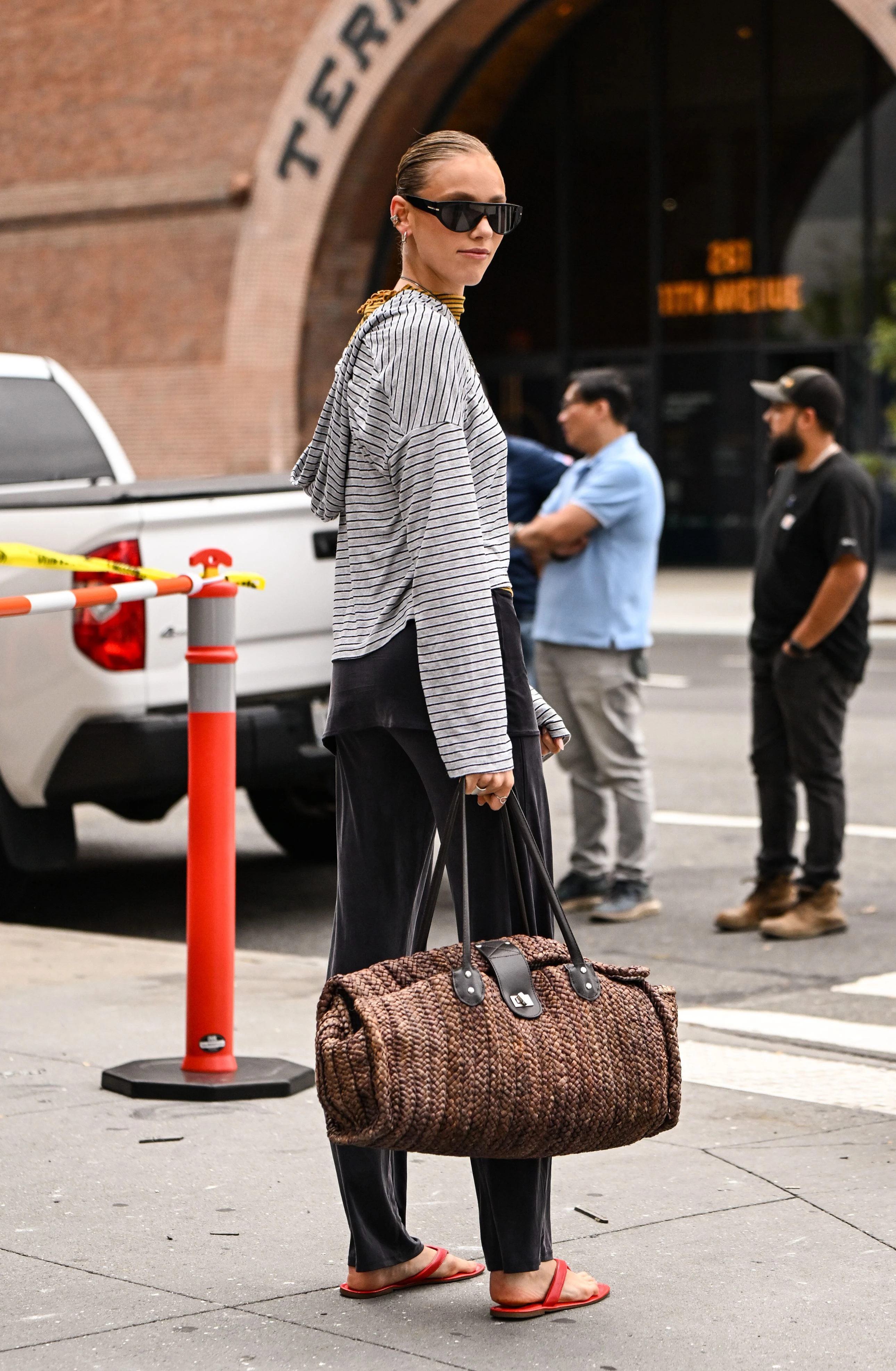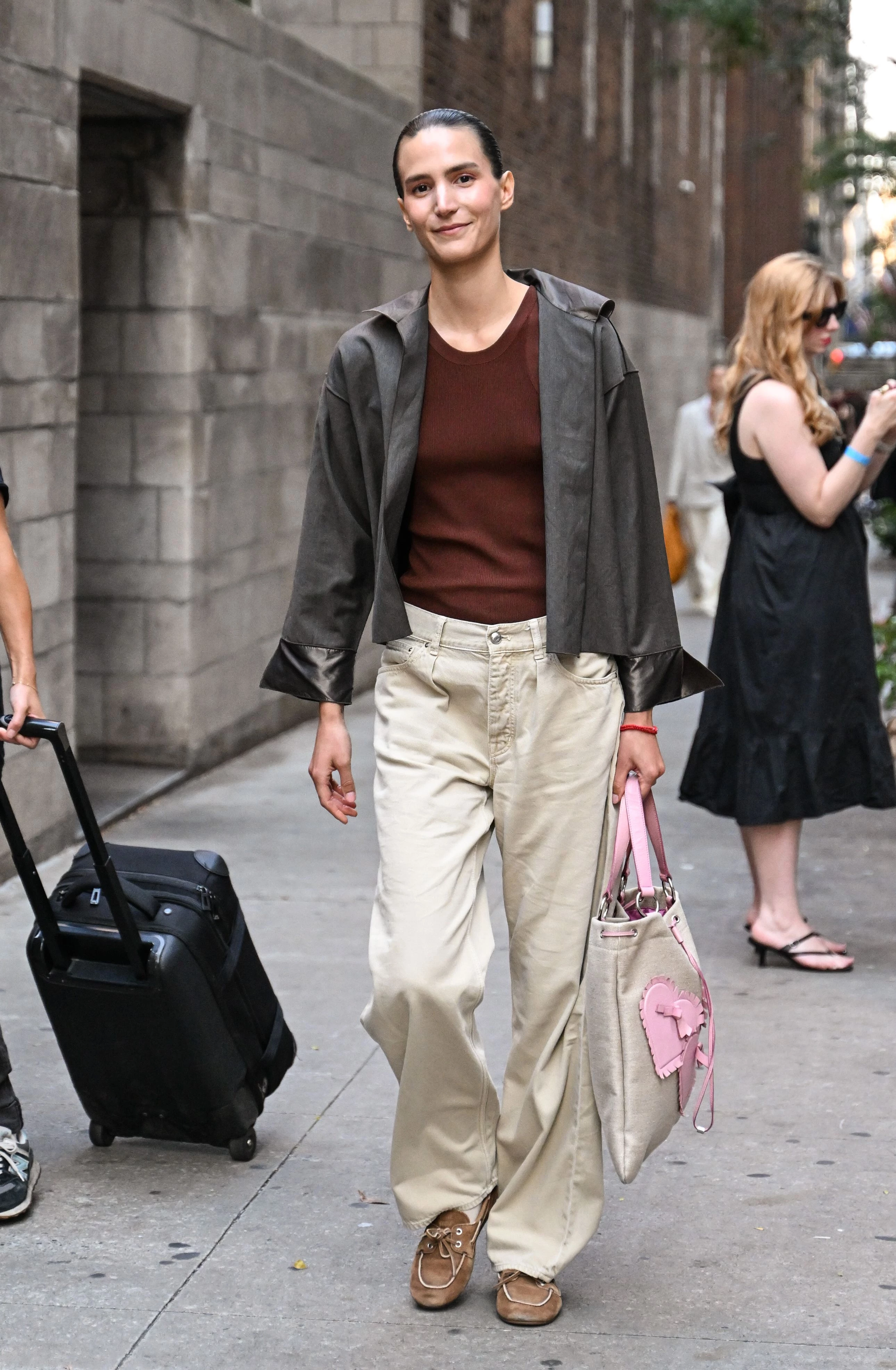 Вів’єн Ронер додала в street style осені 2025 року грайливості. Вона обрала "желейне" взуття: прозорі рибацькі сандалі у поєднанні з гавайською сорочкою та класичними шортами кольору хакі. Такий образ продемонстрував, що вулична мода цього сезону допускає і легкі, і яскраві акценти. Шкіряні куртки знову стали ключовим елементом гардероба. Їх моделі обирали для багатьох повсякденних образів. Так само й широкі штани вийшли на перший план, додаючи силуетам комфорту й трендових деталей.