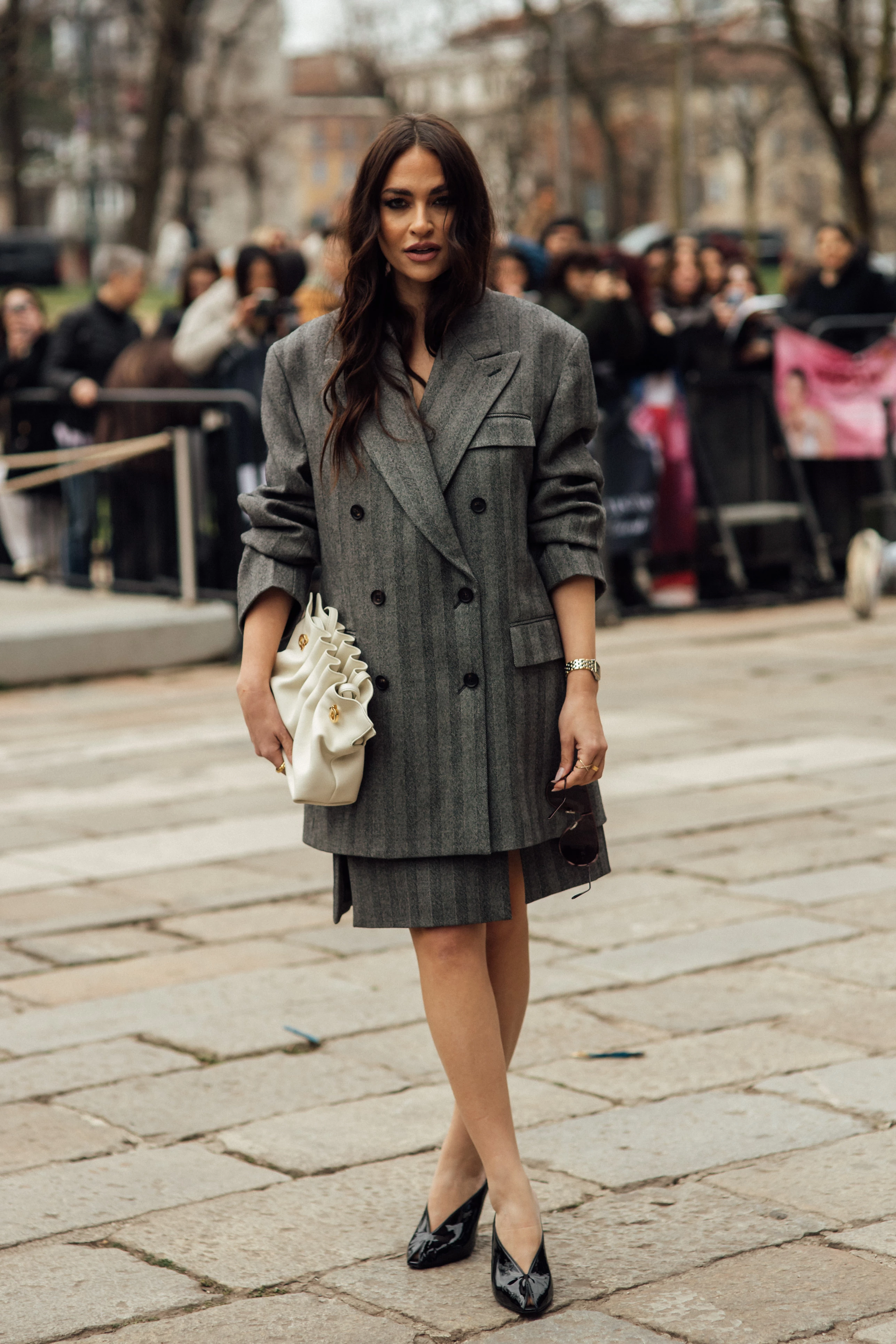 Коли температура нарешті дозволяє відкласти важкий верхній одяг, вулиці міста заповнюють образи, що задають тон на весь рік. Цього сезону сірий колір домінував, а сірий жакет став головною річчю вуличних образів. Популярність сірого — це не випадковість. Світ знову звертається до стриманої естетики 1990-х, яку важко уявити без цієї речі. Сірий жакет із сезону в сезон з’являється в колекціях Міуччі Пради — дизайнерки, яка задає тон всій індустрії.