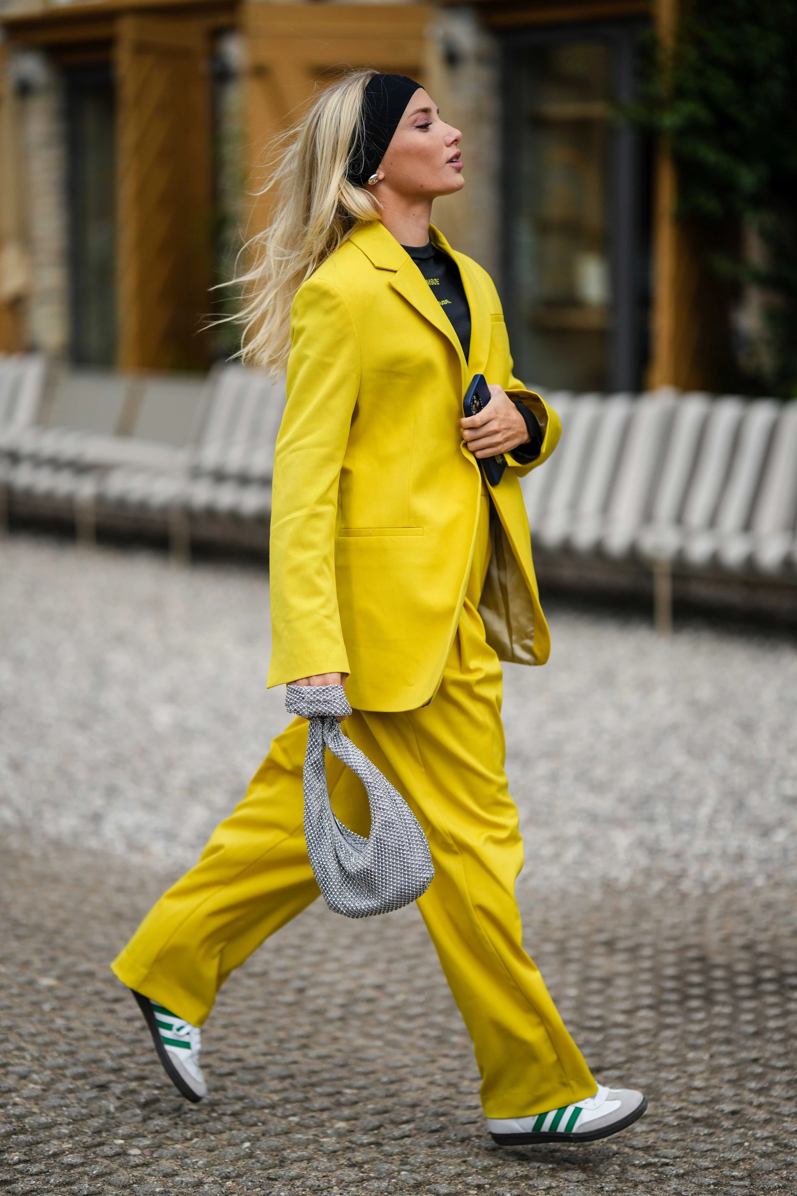 Жовтий і сірий — іще одне вдале поєднання теплого й холодного. Яскравий лимонний відтінок можна збалансувати сріблясто-сірими аксесуарами — сумкою чи взуттям, які створюють спокійний контрапункт у вбранні.