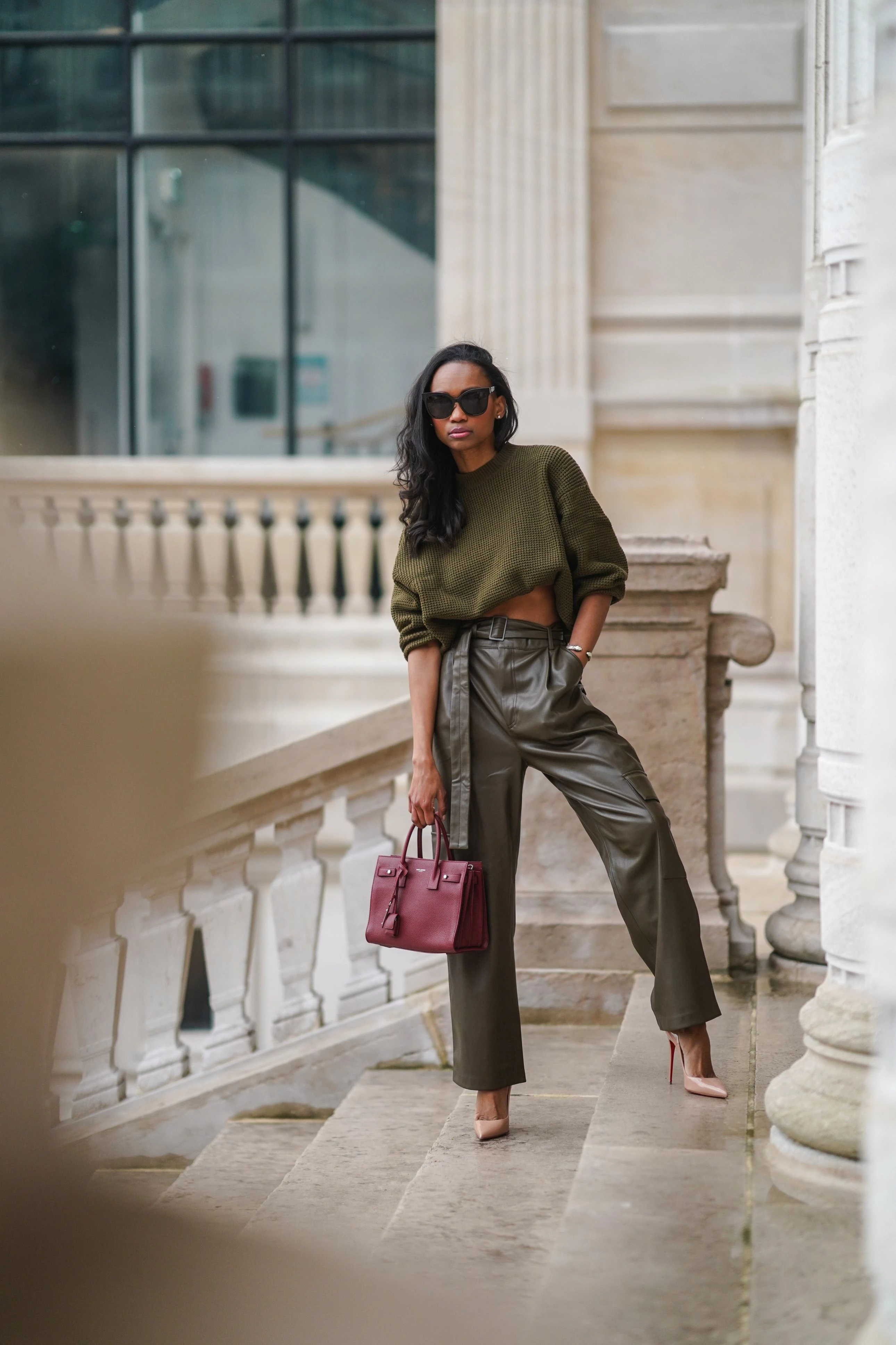 Ця комбінація одразу викликає асоціації з лісом і природою, але вона може мати й сучасний вигляд. Наприклад, у сеті з трикотажного костюма та ботфортів. Жодної нудьги — лише теплі, насичені відтінки.