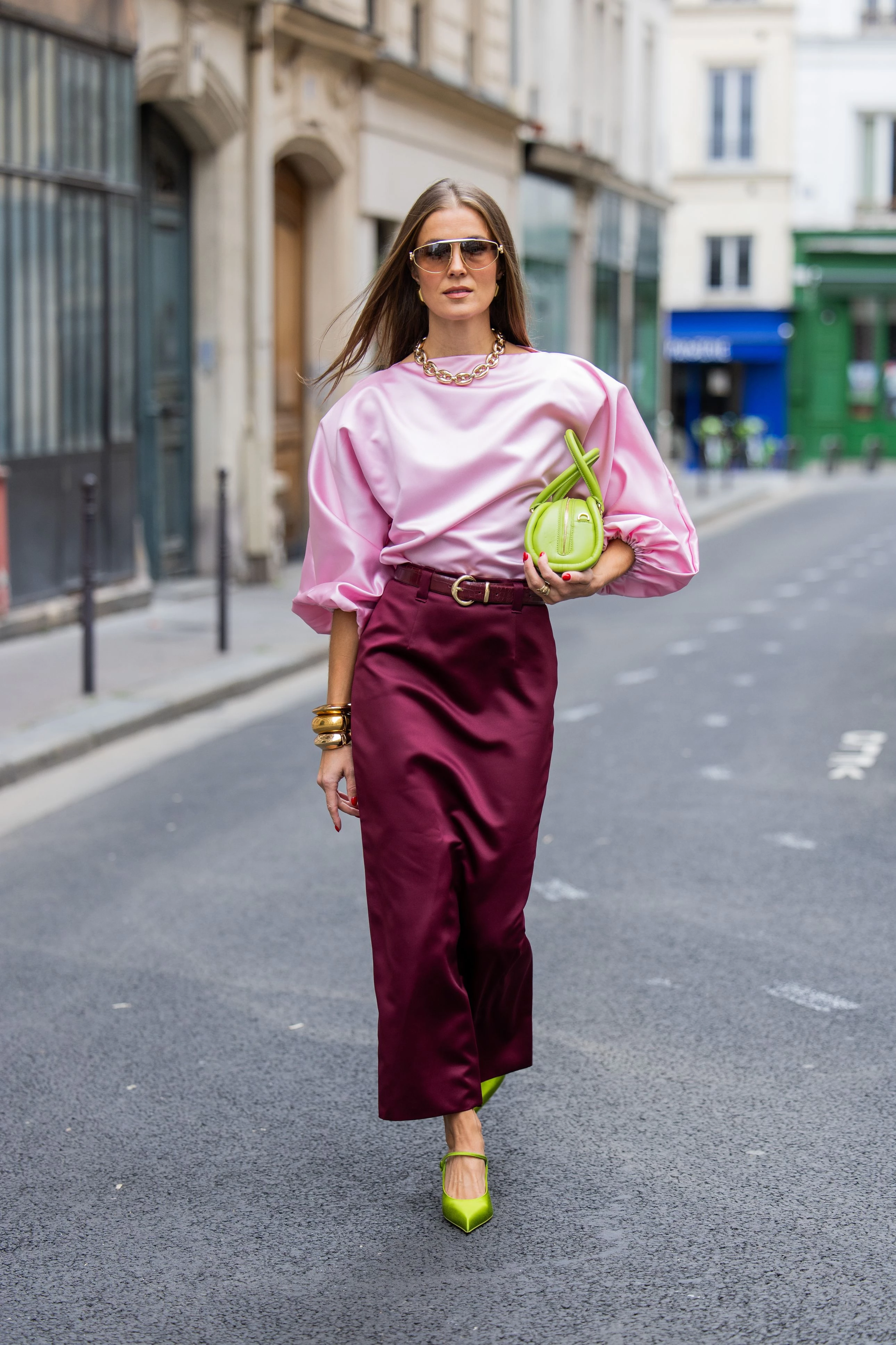 Міф про те, що схожі кольори конфліктують, легко спростовує комбінація рожевого та бордового. Поєднання ніжного та насиченого відтінків створює гармонійний і сучасний образ.