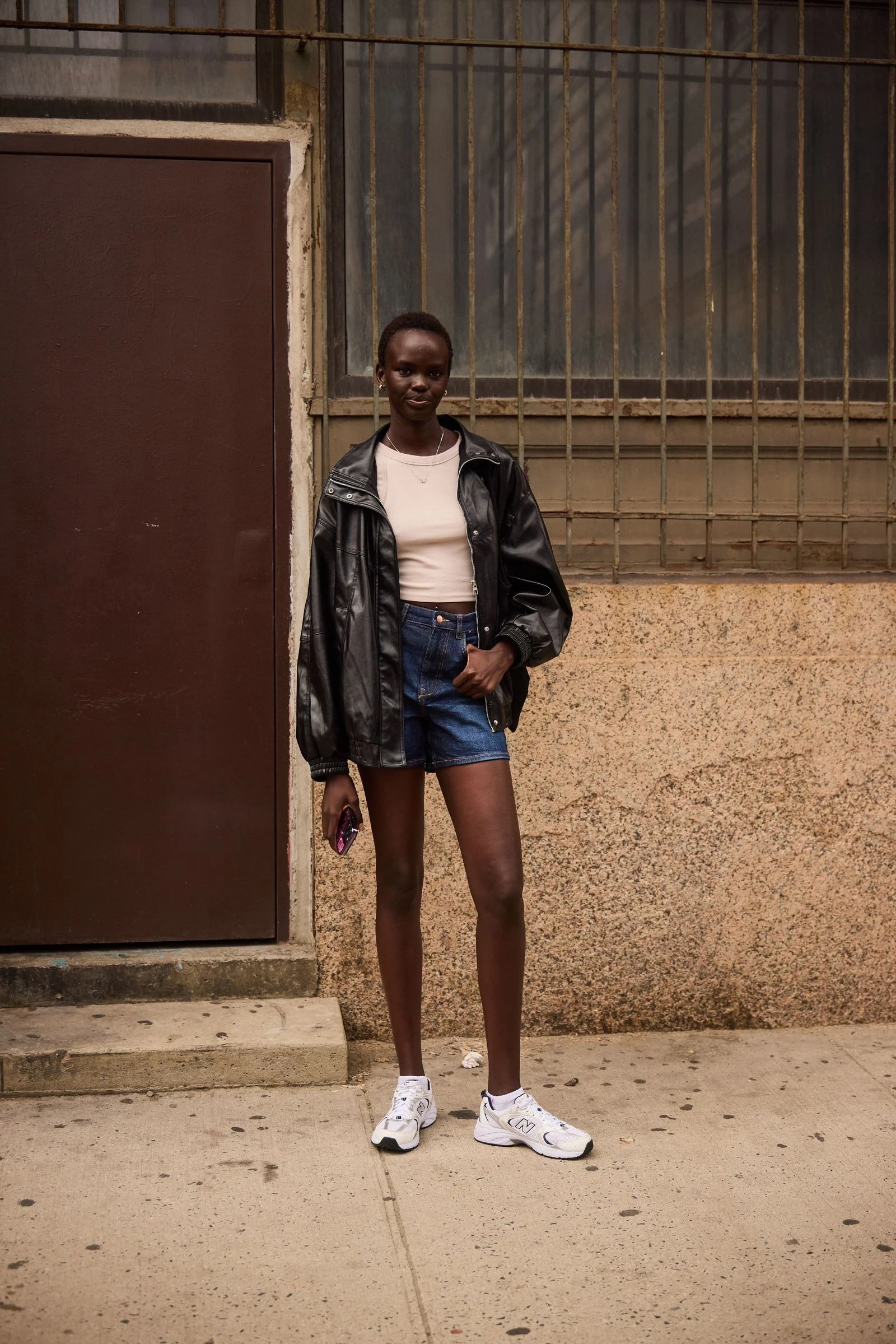 Масивні кросівки у дуеті з класичними джинсовими шортами – вічна літня база. Доповніть образ білою футболкою, а для більш прохолодних днів – лаконічною шкіряною курткою.