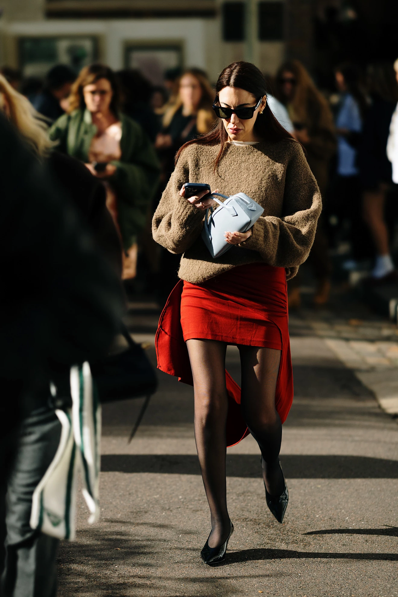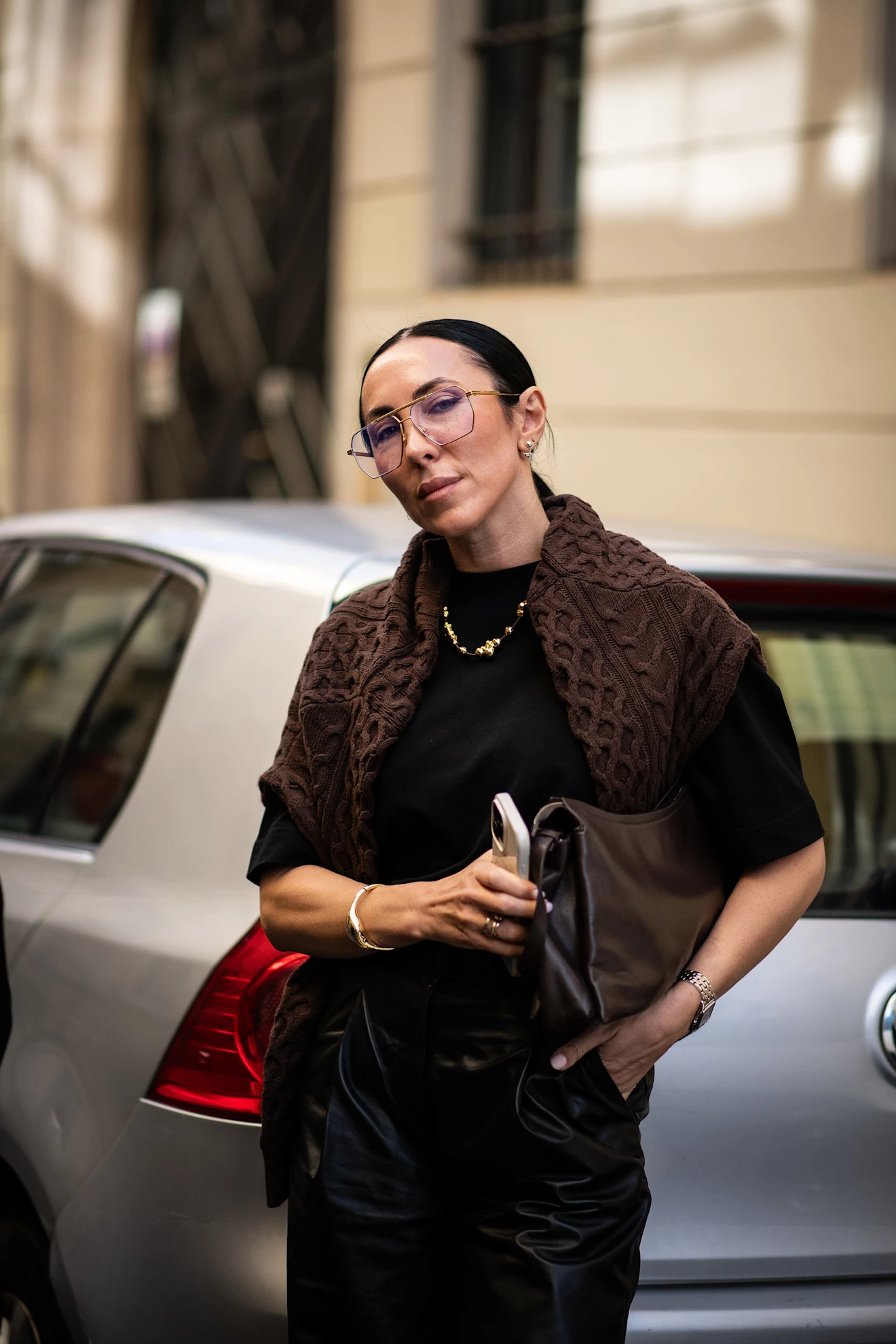 Цієї осені модниці продовжують робити коричневі светри основою повсякденних образів. Нижче — найстильніші приклади стритстайл-хронік з останніх Тижнів моди.