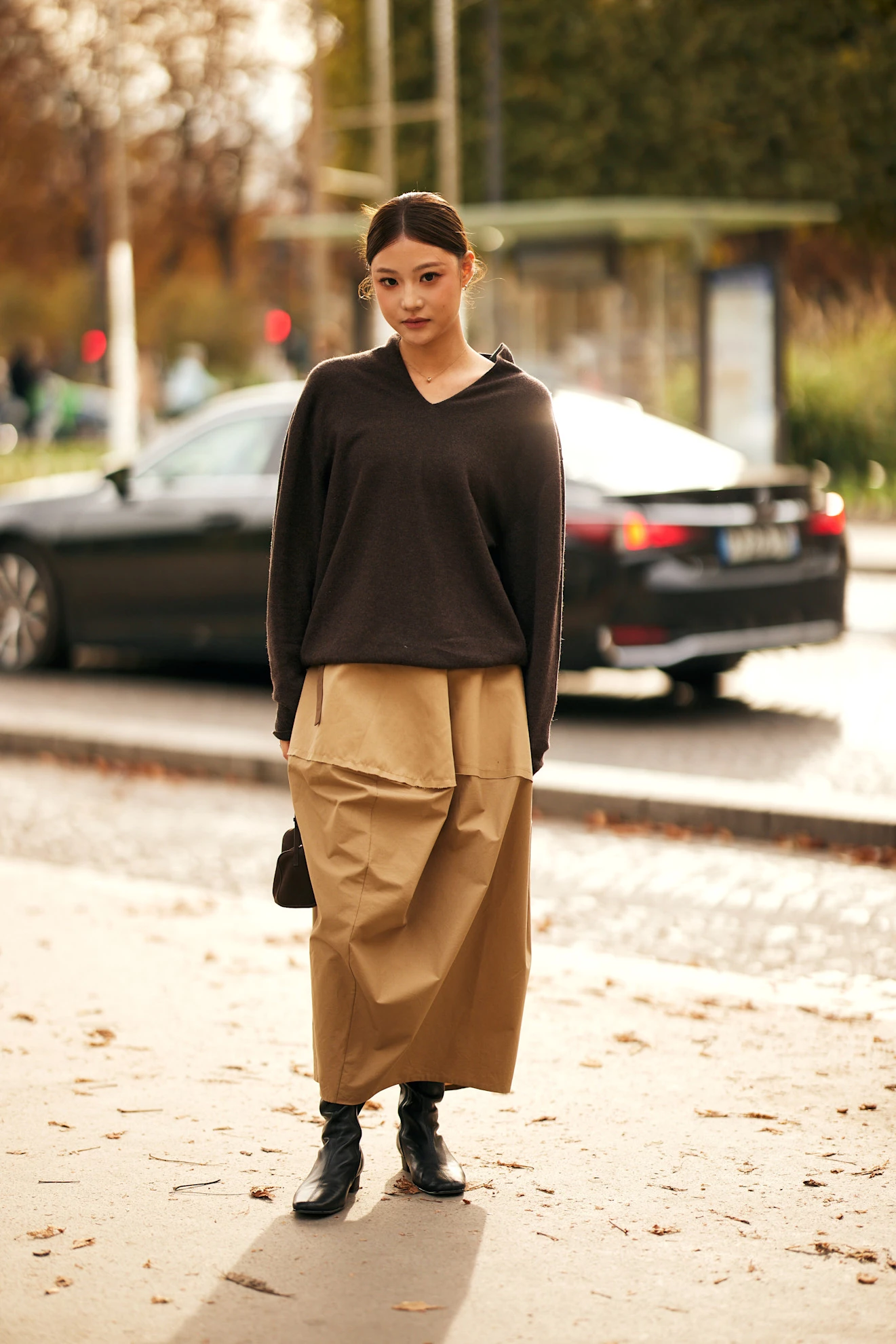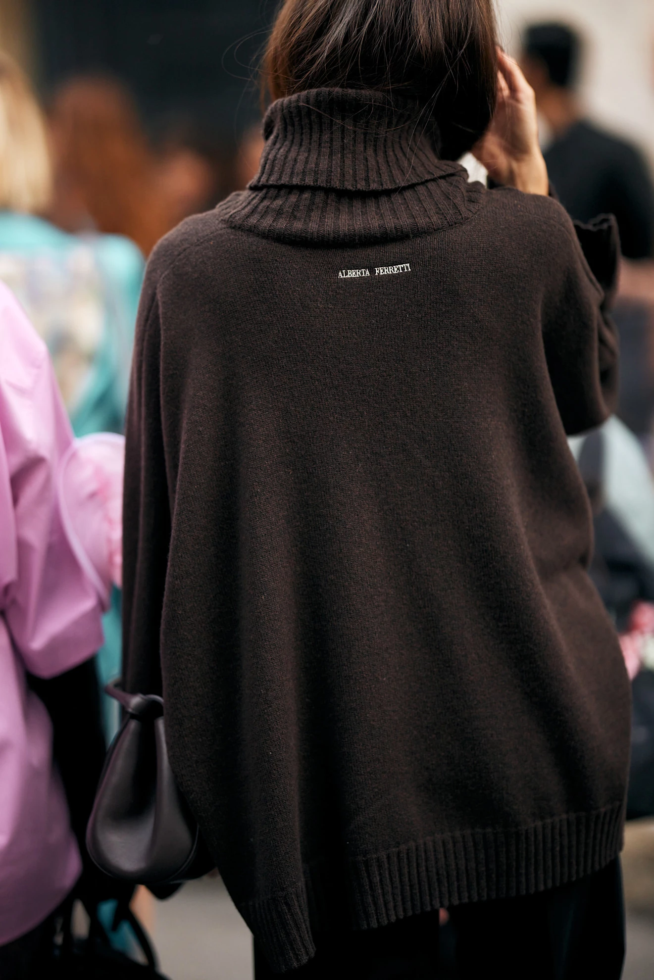 Streetstyle: шоколадний светр — як модниці носять головний одяг та колір сезону