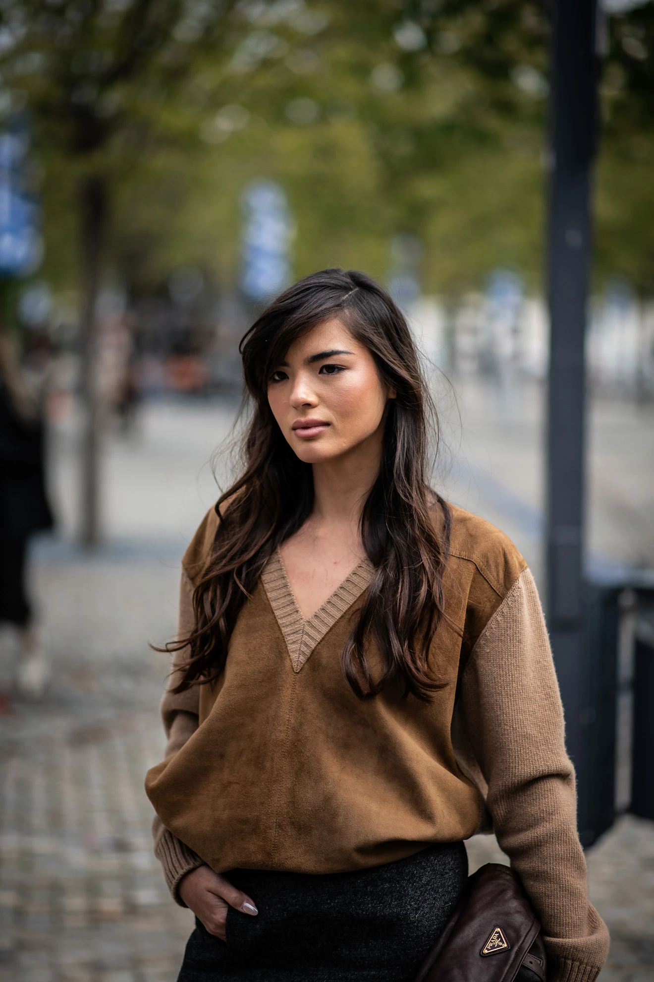 Другу осінь поспіль відтінок темного шоколаду очолює список наймодніших кольорів. Модниці вибирають светри в цій гамі, які беруть як основу чи доповнення сезонних образів. З міні- та максіспідницями, чоботами та кросівками, шкіряними та замшевими аксесуарами — далі пропонуємо подивитися, як модниці носять коричневі светри цієї осені 2025.