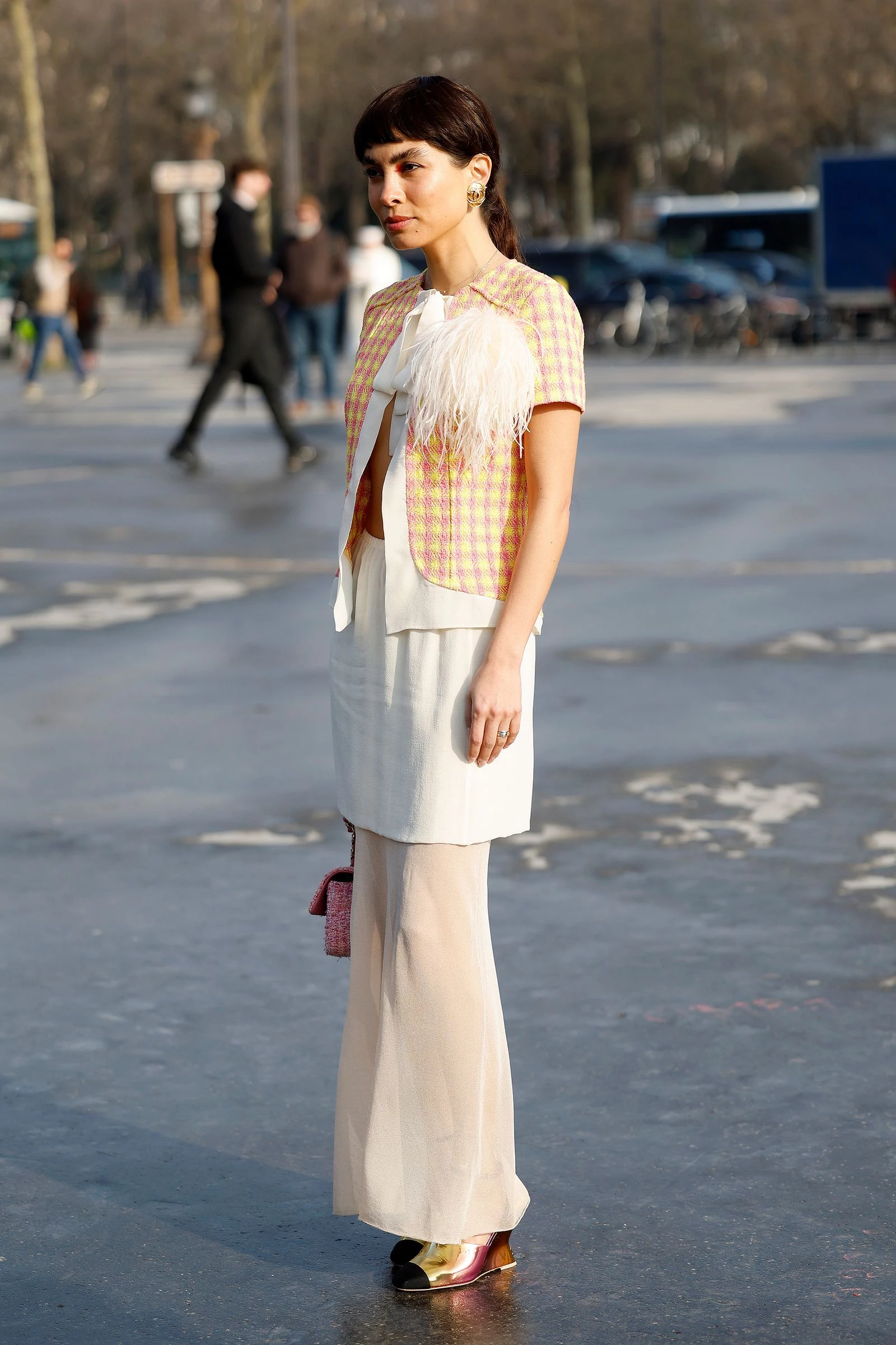 Прозорі тканини додають образу ніжності та романтизму. Цього сезону Chanel представили такі спідниці разом із твідом. А модниці поєднують їх із двоколірними туфлями на танкетці, що додає акценту.