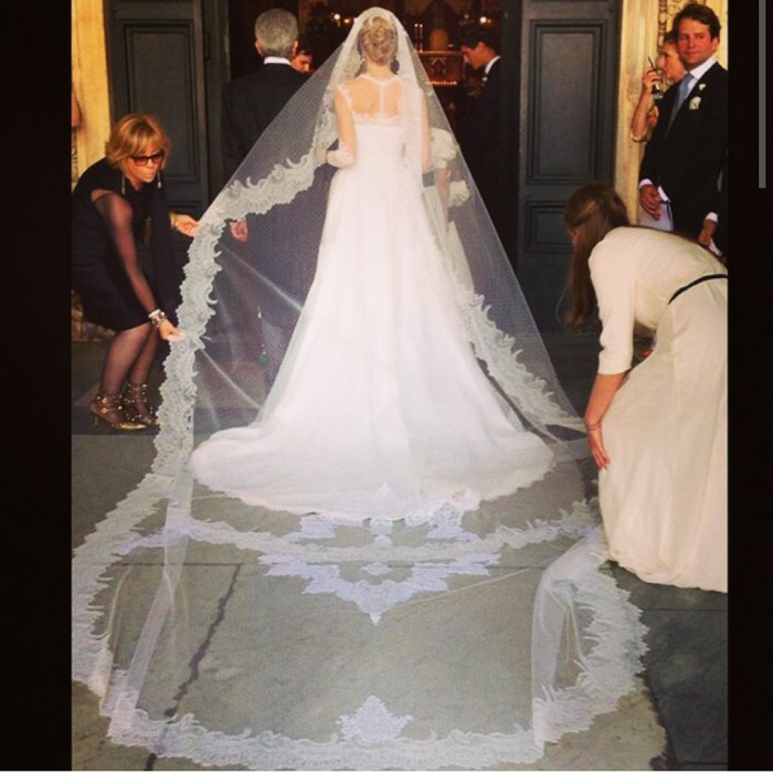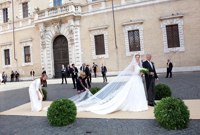 Сама церемония прошла в Риме, в церкви Санта Мария Маджоре, а подвенечный наряд для невесты создавал итальянский модный дом Valentino.