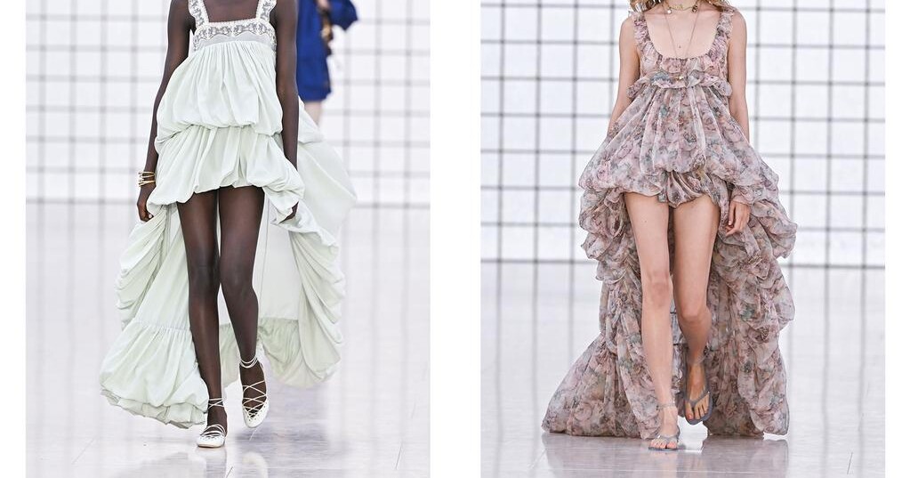 Спідниця з подолом-водоспадом — знову в моді. Асиметричний поділ більше не є чимось старомодним. Його носить Charli XCX на сцені, його показують на подіумах Chloé, Valentino, Vivienne Westwood і Ann Demeulemeester. Замість синтетики, неону і fast fashion — шовк, шифон, органза й складна конструкція.