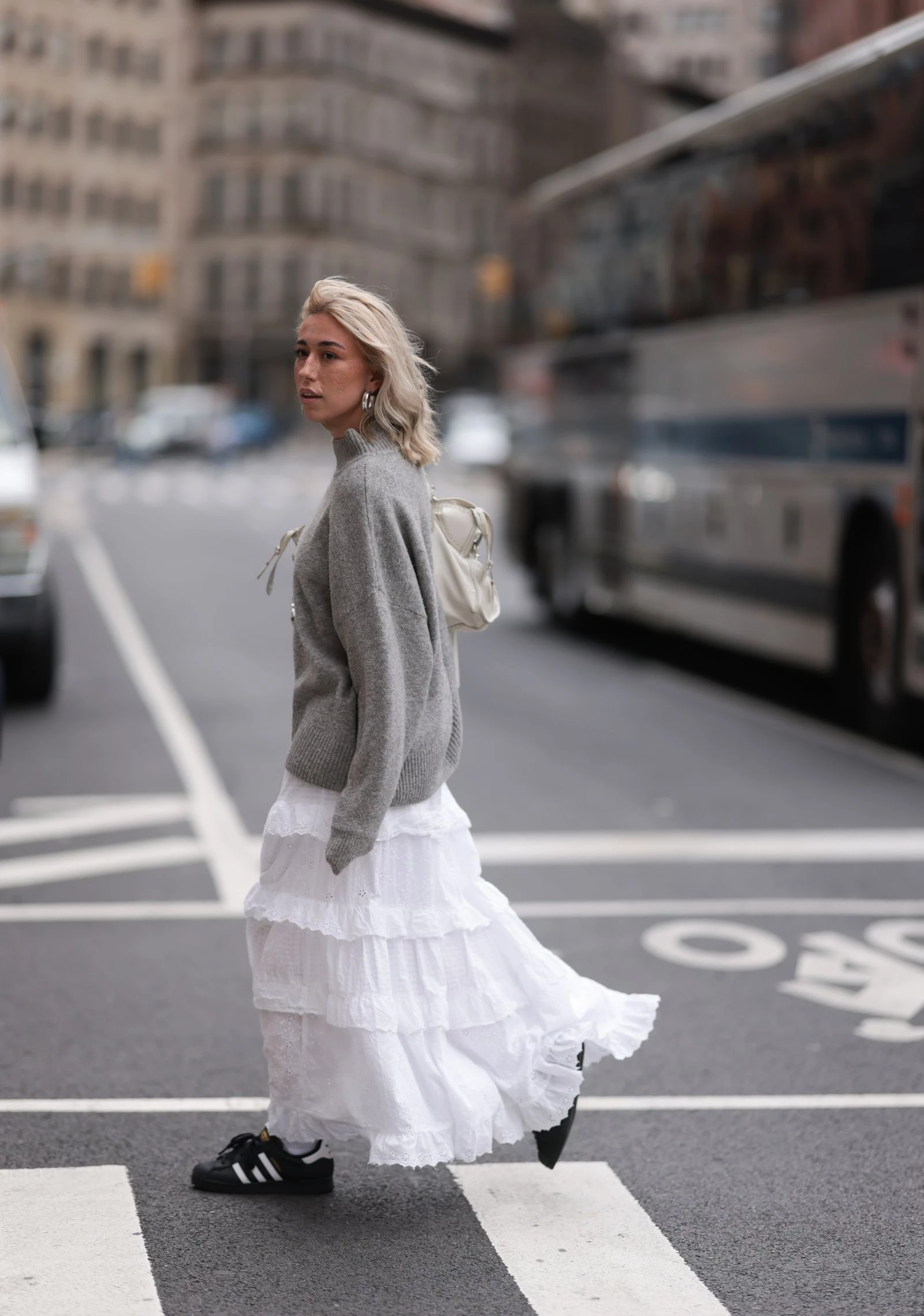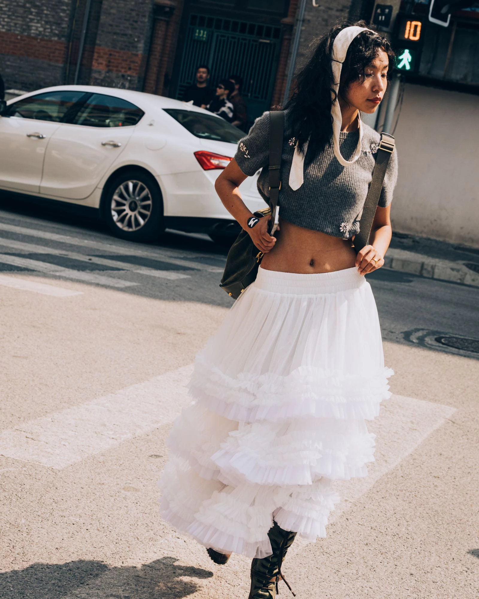 Цього літа бохо повертається не гучно й театрально, а з новою, делікатною інтонацією. Легкі тканини, мереживні комбінації, а в центрі оновленого тренду біла спідниця з воланами: романтична альтернатива класичній максі, яку хочеться носити щодня. Довга, напівпрозора та багатошарова, вона зберігає головну перевагу бохо-естетики.