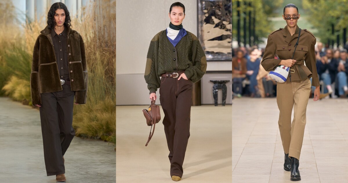 Ідеальні моделі з’явилися в колекції Altuzarra. На подіумі домінували коричневі джинси з деніму, шкіри та замші. Наш фаворит – джинси прямого крою з високою посадкою в поєднанні з елегантними туфлями-човниками на невисоких підборах. Вовняний светр і довга дублянка завершать образ для мінливої березневої погоди.