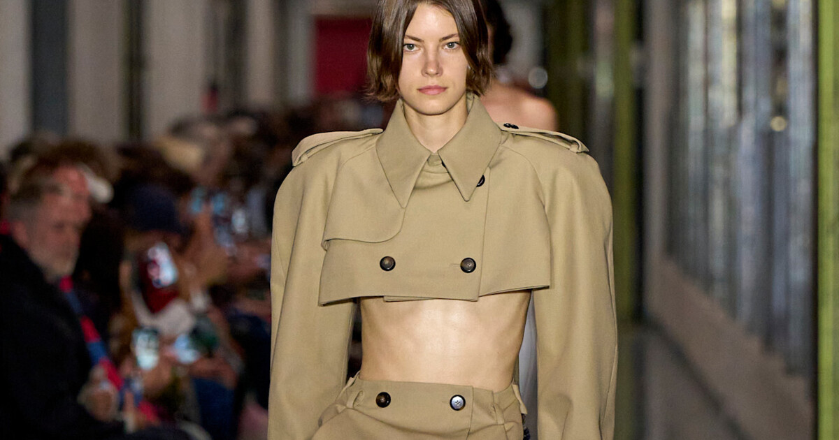 Натхненна тренчем, спідниця з ґудзиками з високою посадкою стає гітом весни 2026. Її універсальний крій дозволяє носити її в різних образах. У трендовому дуеті з мюлями на танкетці та топом, болеро чи вкороченим жакетом вона створює сучасний, сміливий і стильний комплект, як у колекції Дюрана Лантінка для Jean Paul Gaultier.