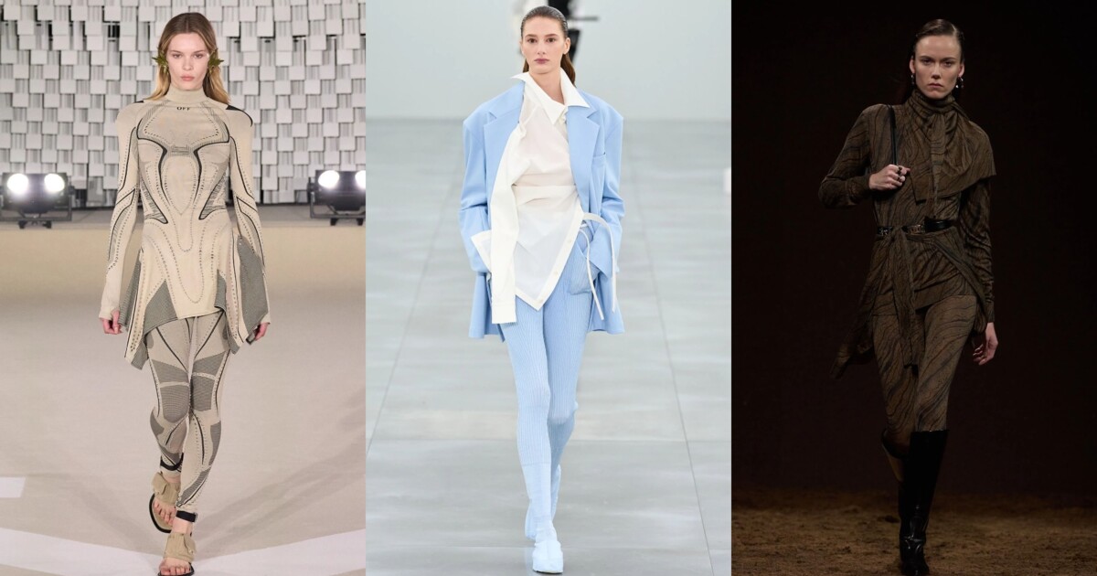 Off-White продемонстрували ідеальний комплект для вихідних: принти та сміливий крій блузи додають образу характеру. Високий комір і асиметричний низ – ключ до стильного та координованого вигляду. Sandy Liang же показали більш повсякденний образ: яскраву довгу блузу і легінси, прикрашені квітковим принтом, створюють легкий та виразний комплект для рутинних справ.