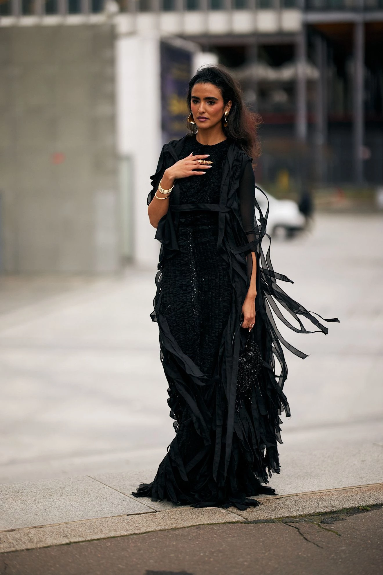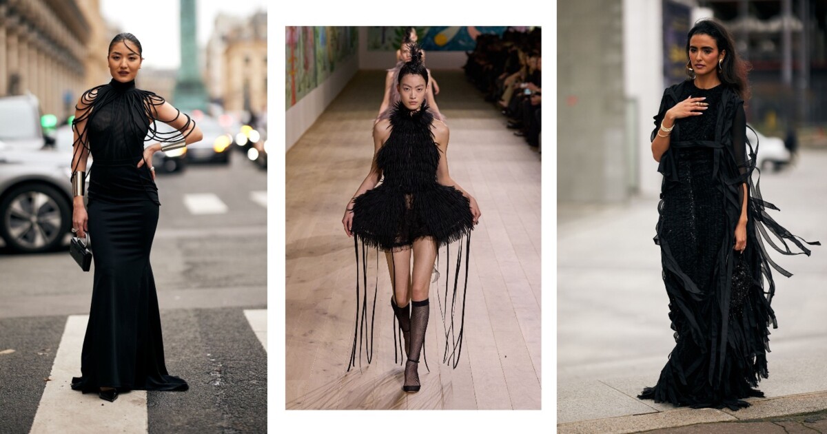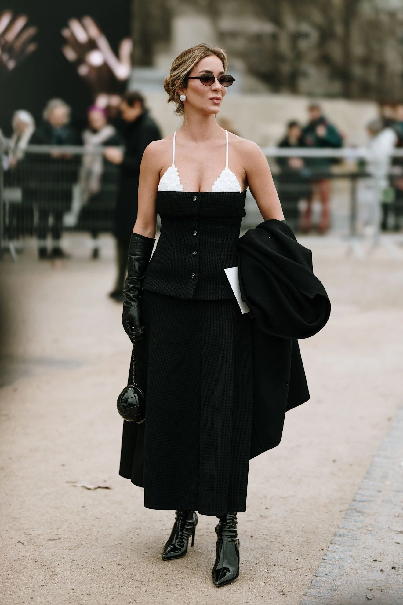 До Ортеги приєднуються й інші зірки: Кеті Голмс у шкіряній сукні на вечірці Tod’s, Дакота Джонсон, яка відмовилась від богемного стилю на користь боді в темній палітрі під час промотуру фільму "Матеріалісти". У вуличному стилі цей тренд теж набирає обертів: у Парижі it-girls вже демонструють шкіру, корсети, стрічки та довгі силуети, що торкаються землі.