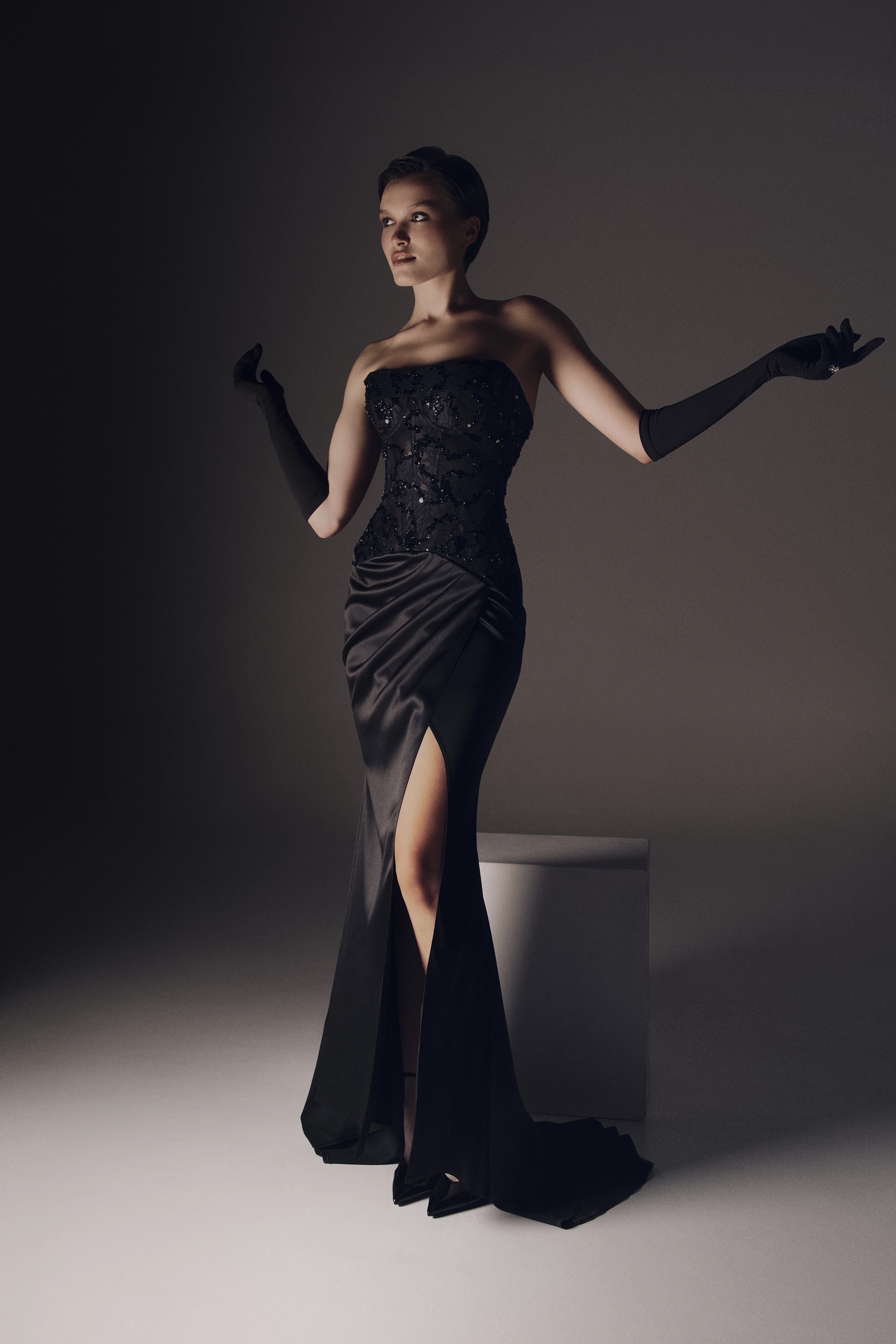 Святкова колекція Eclipse – нова лінійка KEL, яка досліджує контрасти жіночності. Чорний атлас, мереживо та срібло поєднуються з прозорими тканинами та структурними корсетами, підкреслюючи водночас силу та крихкість, рішучість і ніжність. Кожен виріб створений вручну з безкомпромісною увагою до деталей. Натхнення колекції – жінка, яка приймає свою світлу і темну сторони, знаходить баланс та впевнено крокує світом.