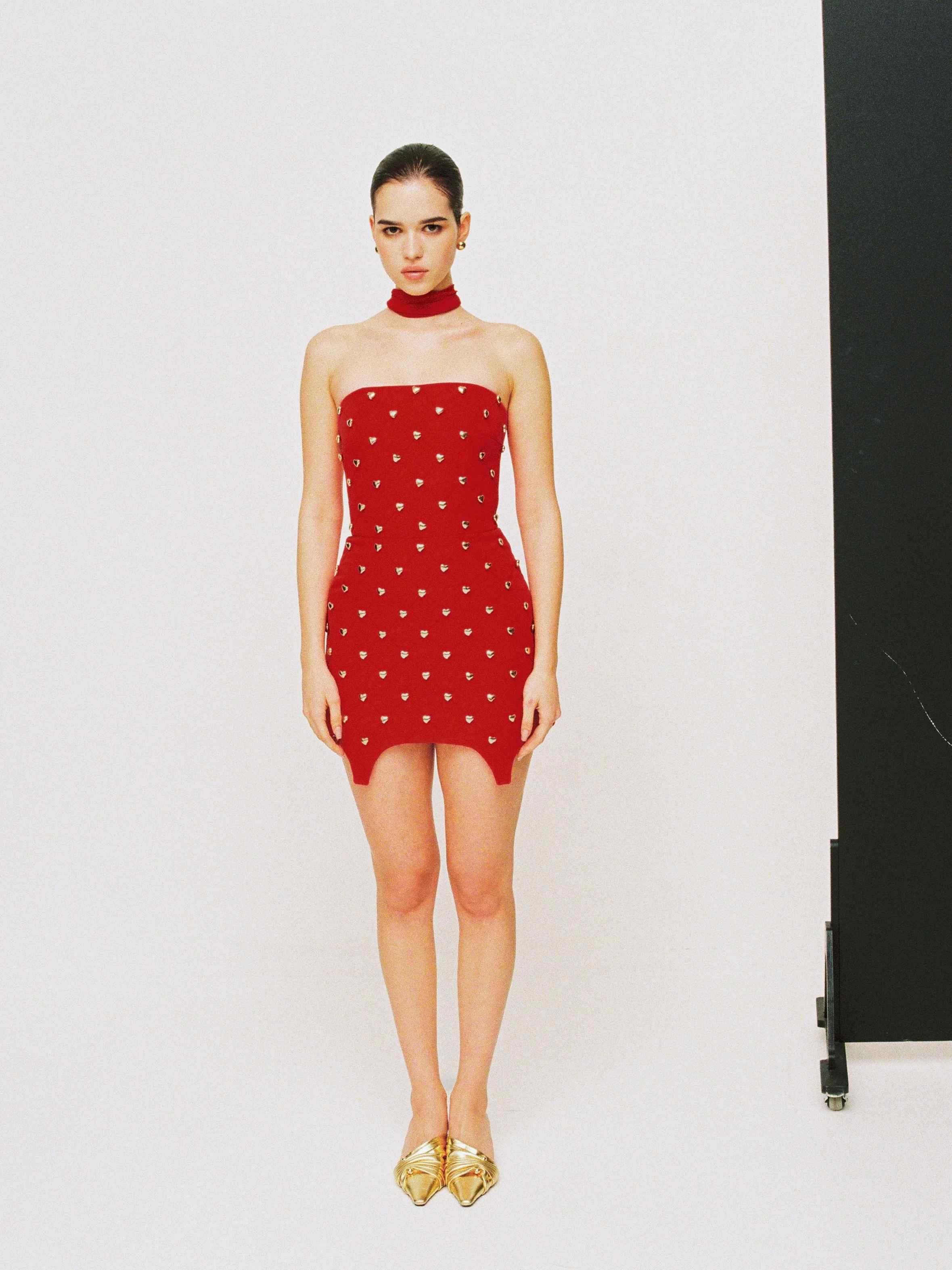 Святкова колекція La Notte – нова лінійка Guranda, яка перетворює ніч на емоційний ландшафт, натхненний італійським модернізмом Мікеланджело Антоніоні. Вечірні образи поєднують оксамит, шифон і денім, насичені червоним, чорним, блакитним та відблисками золота й стразів. У центрі колекції – знімний мінікейп, який доповнює культові корсетні спідниці та оксамитові сукні-бандо. La Notte демонструє характерну для Guranda сміливу конструкцію та архітектурні силуети.